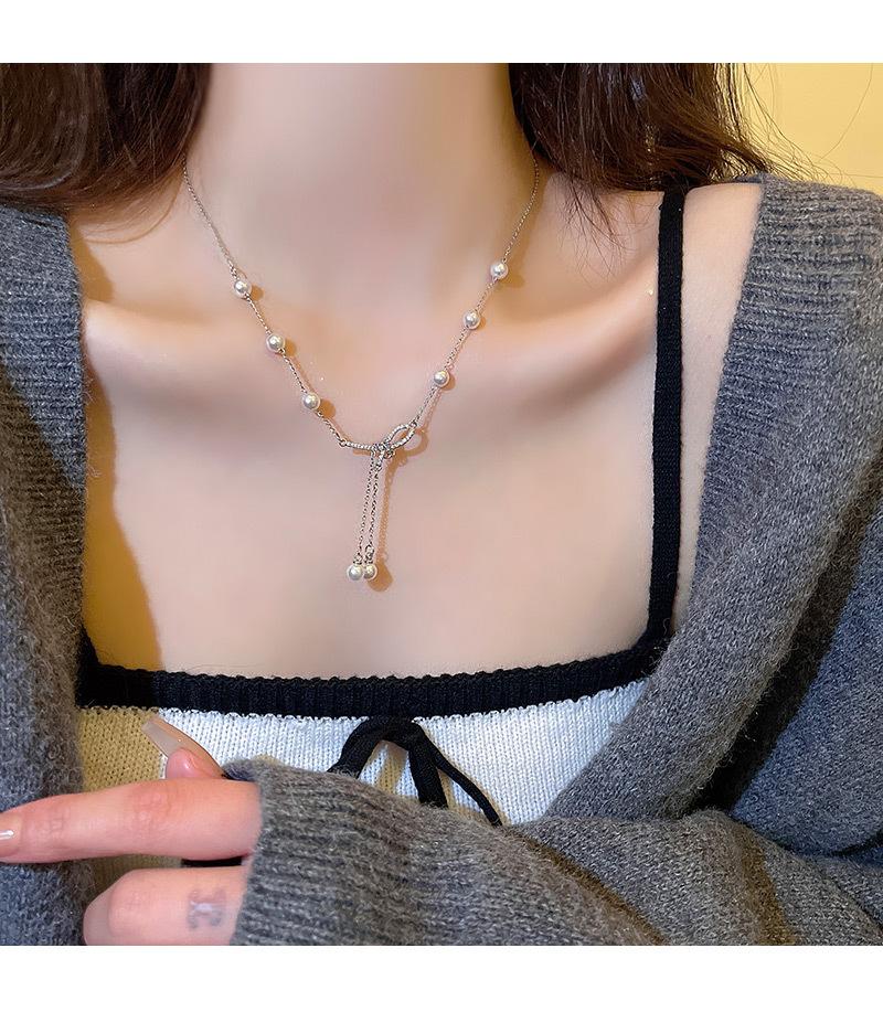 Colar com pingente de pérola bowknot versátil design de nicho titânio aço clavícula corrente leve acessórios de colar de luxo atacado