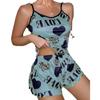 Ropa de Casa Delgada de Verano de Comercio Exterior Europeo y Americano con Hermosa Espalda Descubierta, Sexy Vestido de Tirantes, Estampado Lindo de Dibujos Animados de Amor