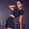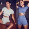 Shorts de Yoga Ajustados Europeos y Americanos Transfronterizos para Mujer para Verano Fitness Running Deportes Absorción de Humedad Cintura Alta Levantamiento de Glúteos Pantalones Tres Puntos