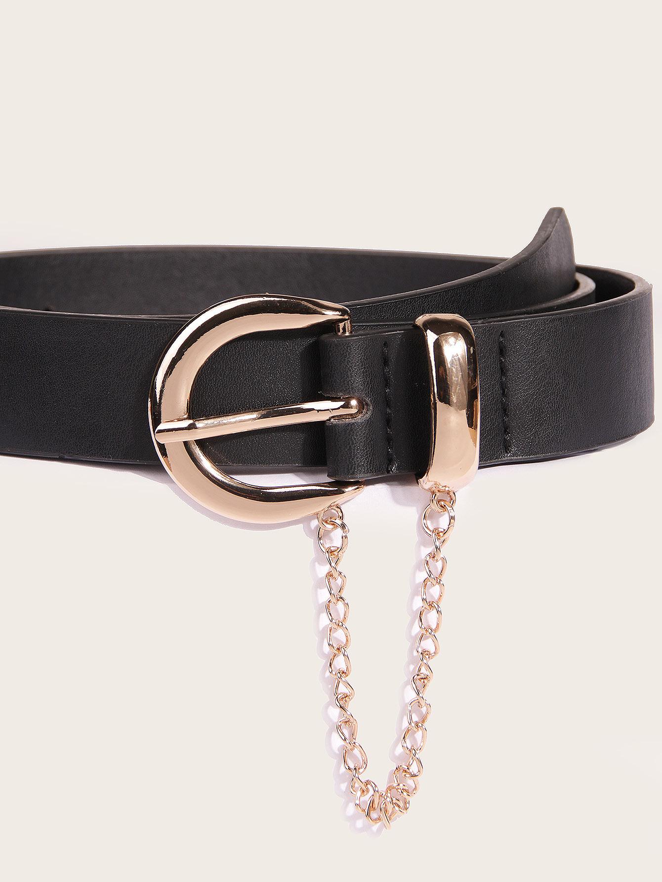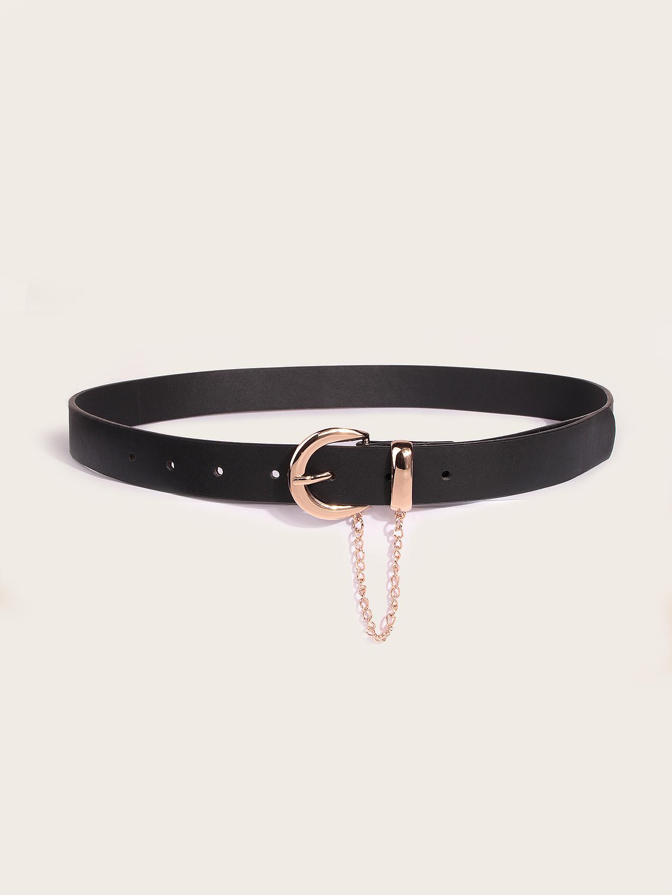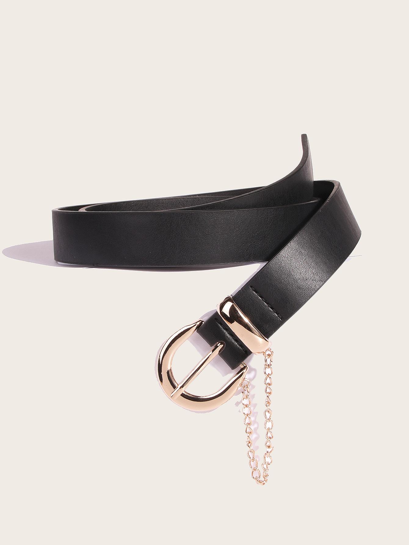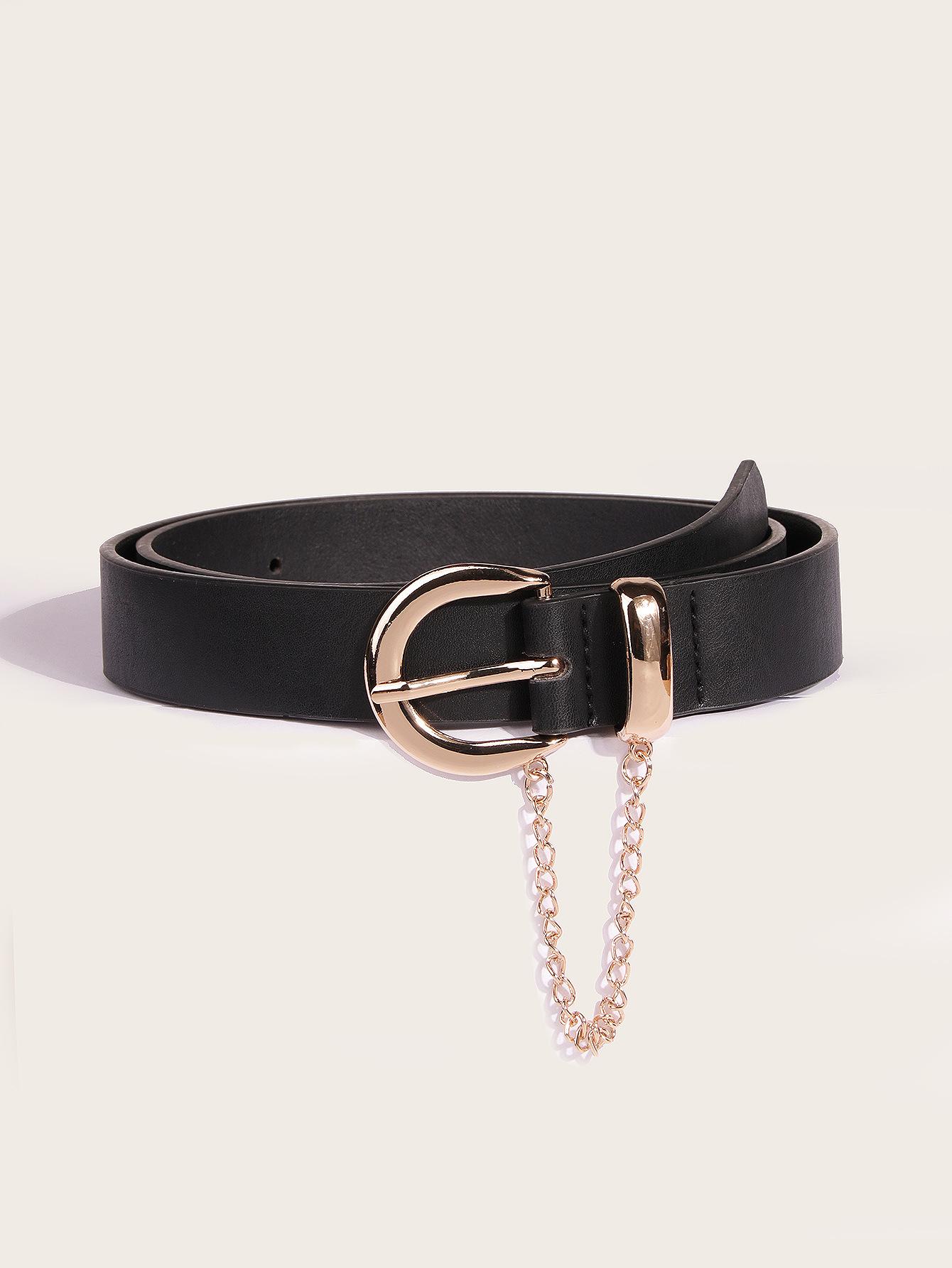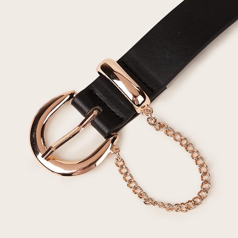 Nueva cadena de anillos con hebilla, cinturón de mujer de moda popular transfronteriza simple y versátil, ventas directas de fabricante, cinturón plano negro