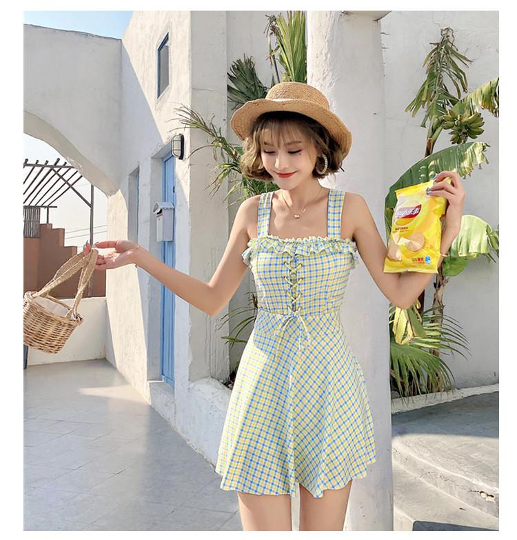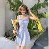 Traje de baño Prellis de una pieza para mujer, nuevo estilo, con cintura ajustada, con volantes y cobertura abdominal, adelgazante, ideal para playa.