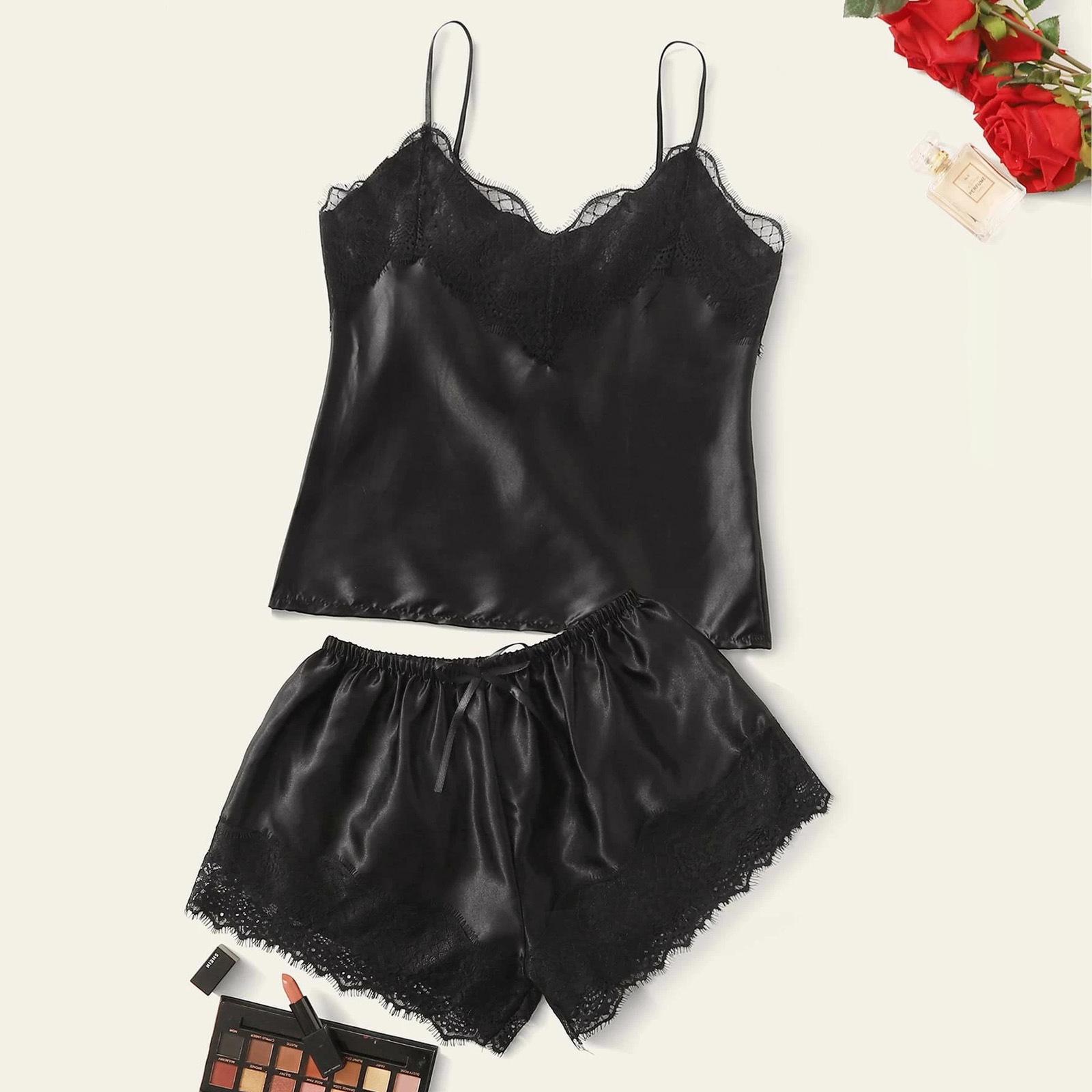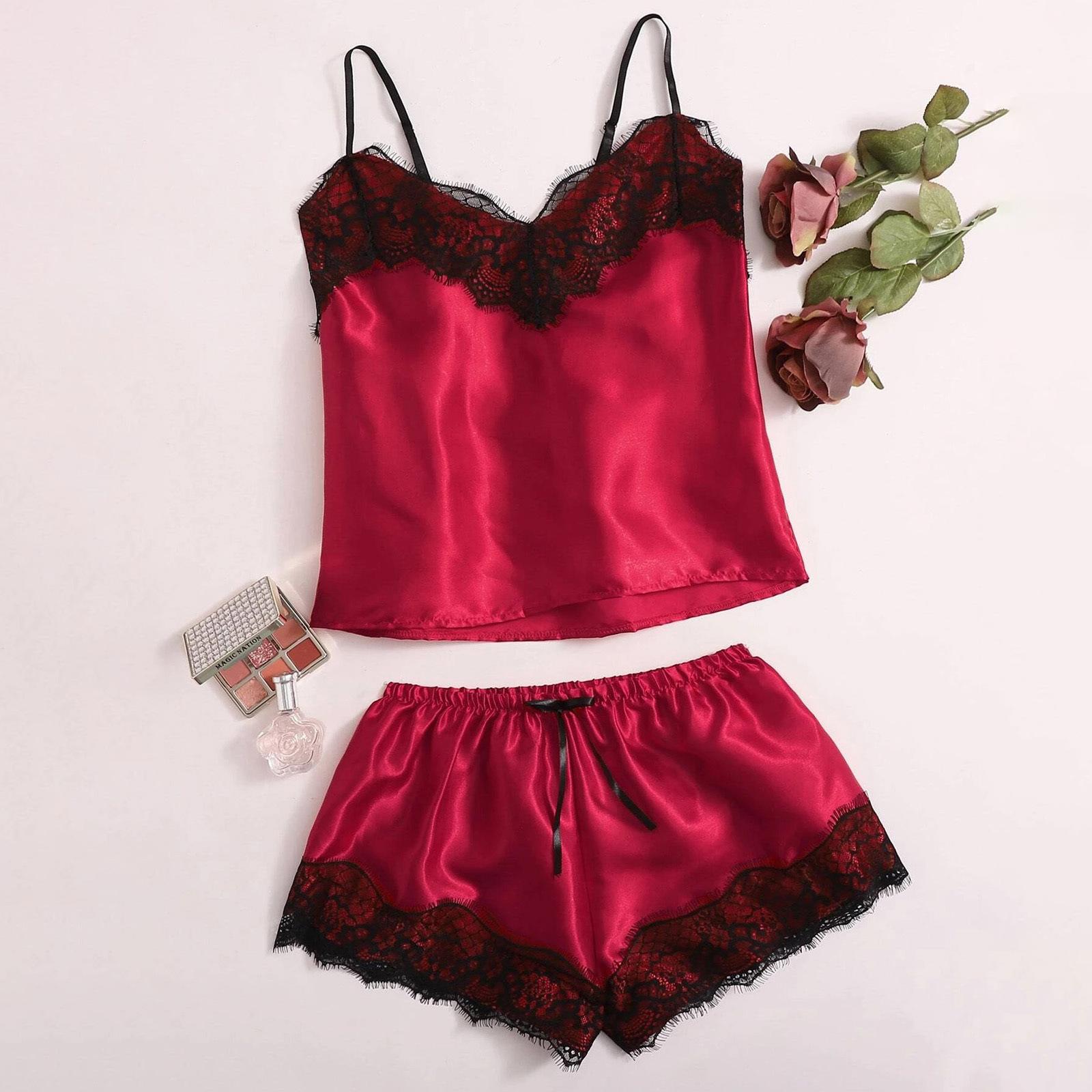 Explosiones transfronterizas Ropa de Casa Sexy Multicolor Europea y Americana Conjunto de Pijama de Encaje con Tirantes de Dos Piezas Moderno y Cómodo