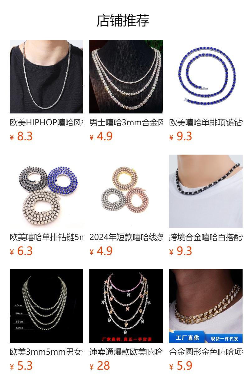 Cadena de tenis, cadena cubana, joyería con colgante hip-hop