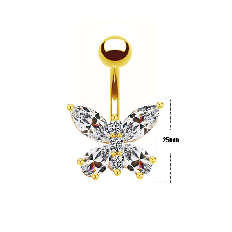 Anillo de ombligo con forma de mariposa, estilo transfronterizo europeo y americano, de moda, ligero y lujoso, con colgante de mariposa para niña, piercing para el ombligo.