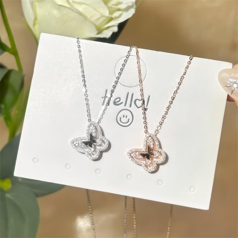 Collar de plata de ley s925 con colgante de mariposa y circonita para niña, diseño de nicho, cadena de clavícula ligera y de lujo, cadena de collar de alta gama a la moda.