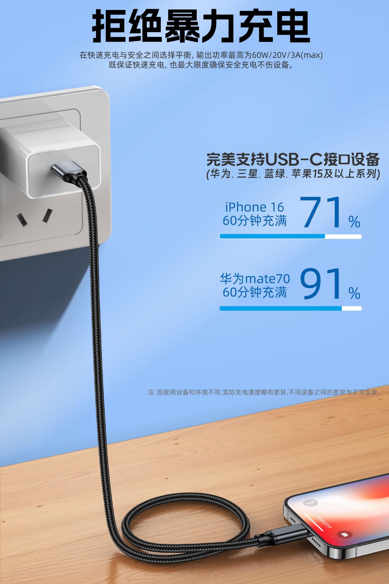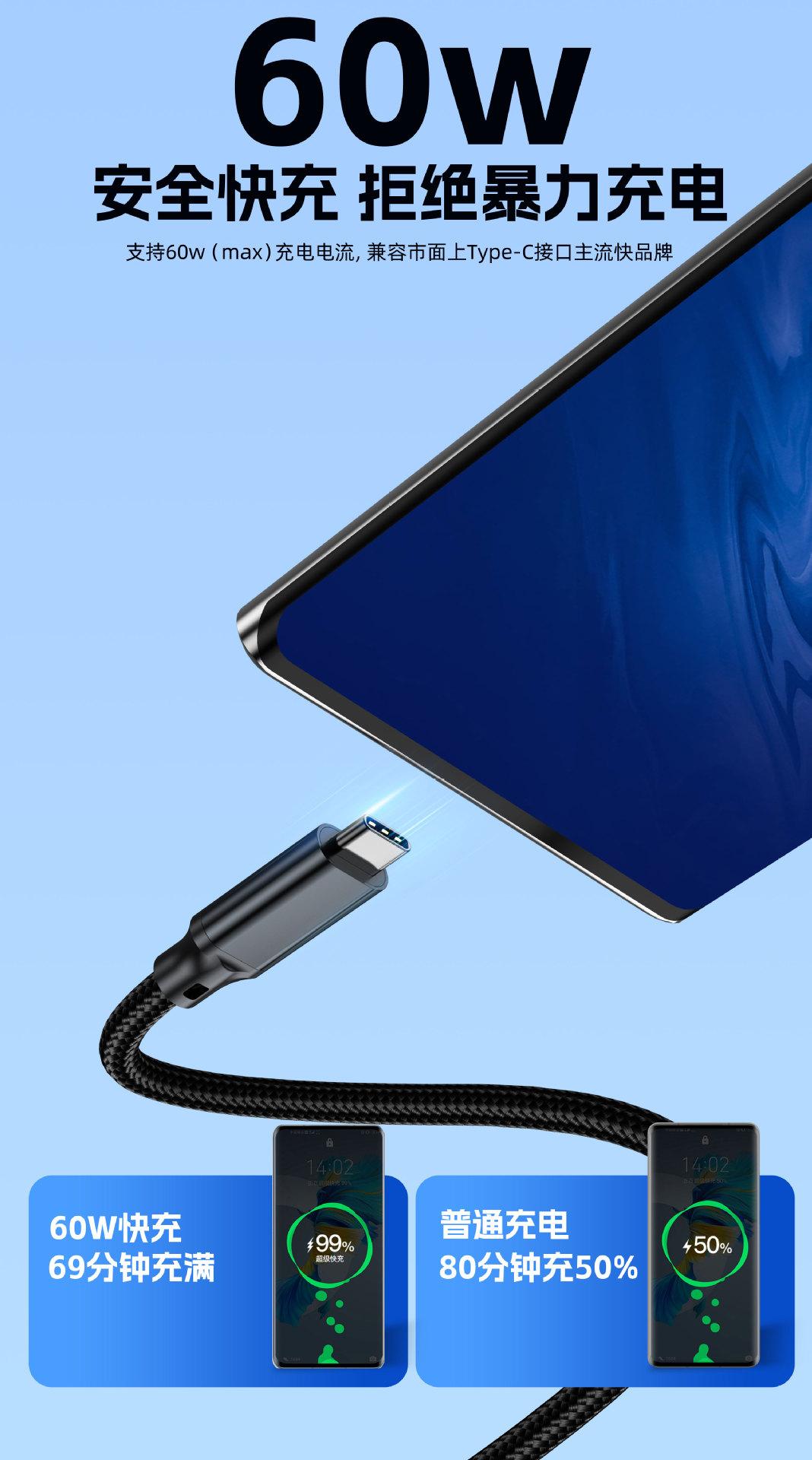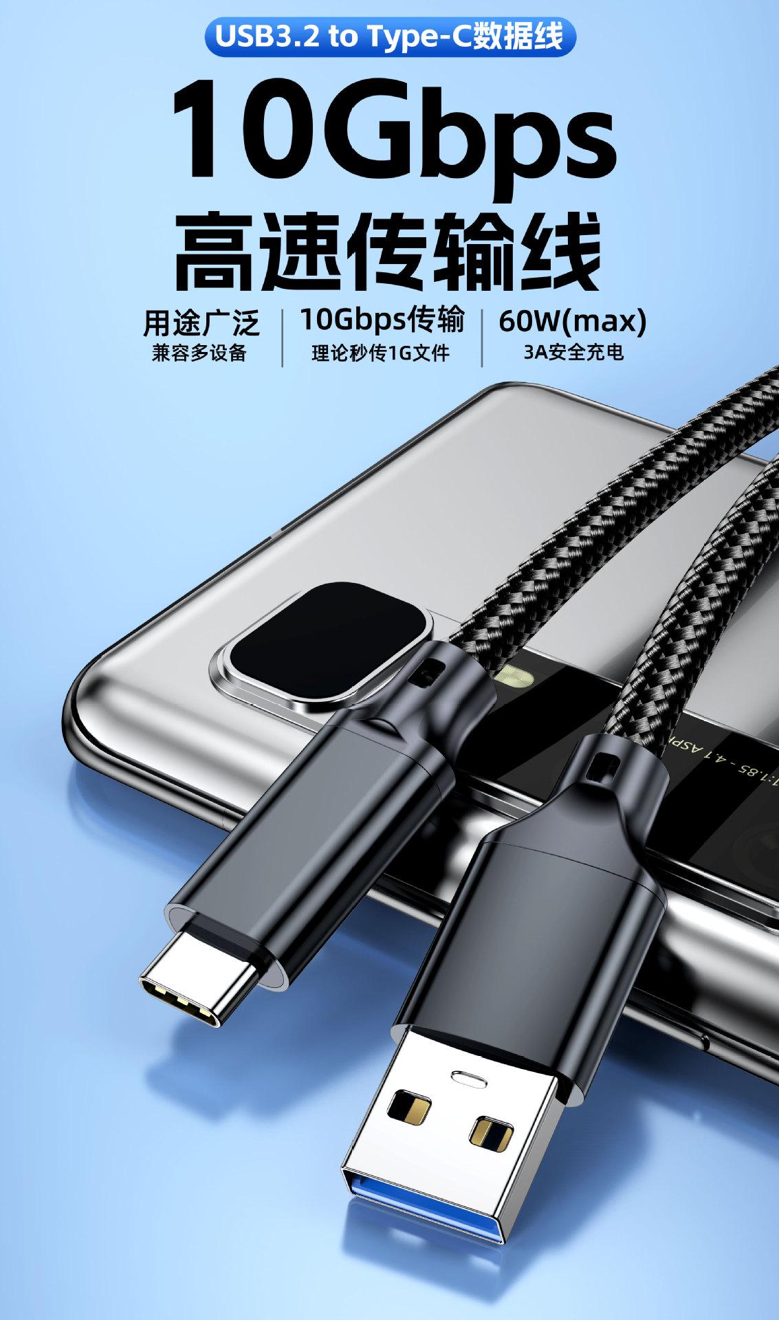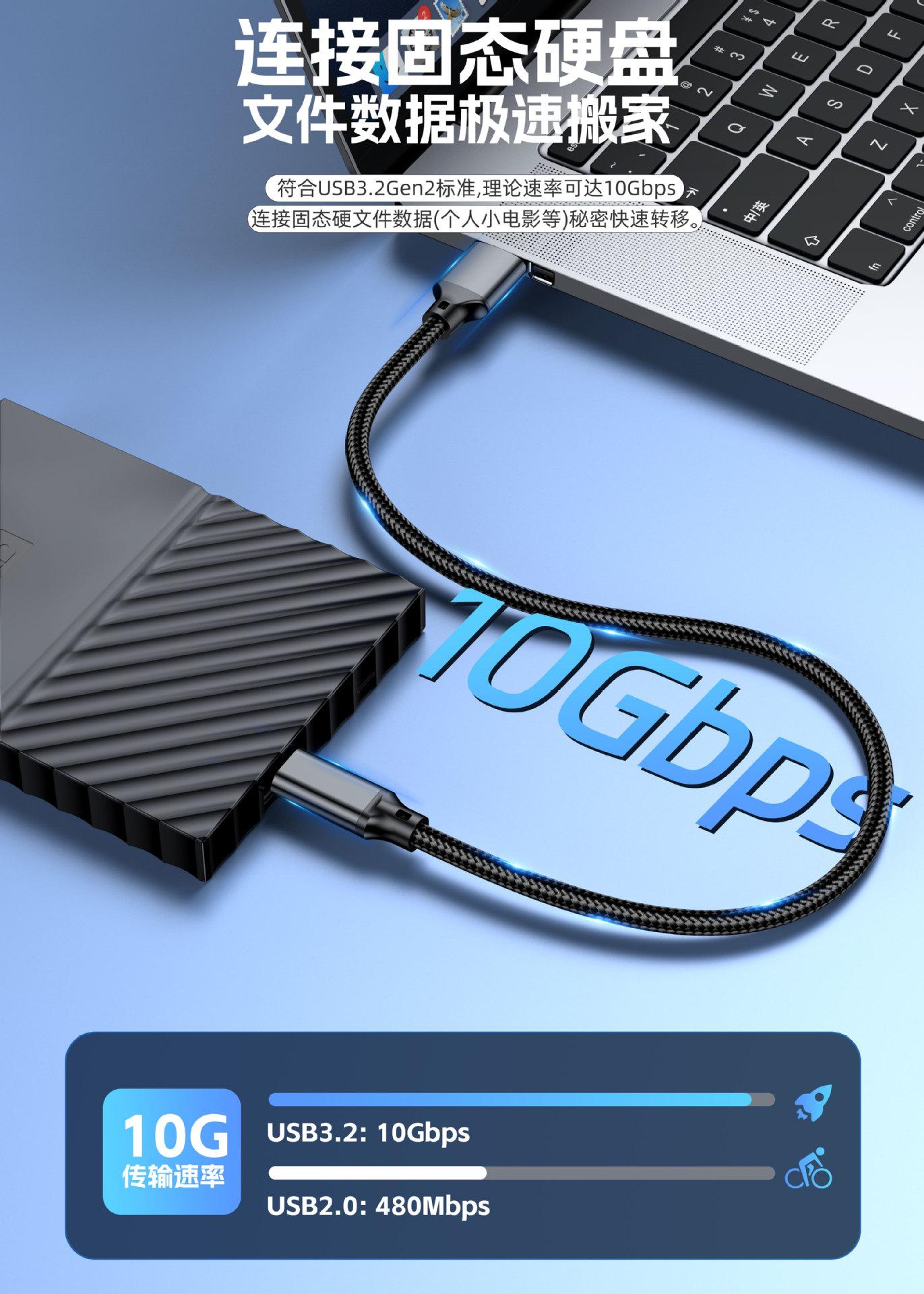 Cable de Datos Tipo C Usb3.2 a C Cable para Disco Duro 10Gbps Transmisión de Alta Velocidad Cable de Datos Atoc60W Cable de Carga Rápida