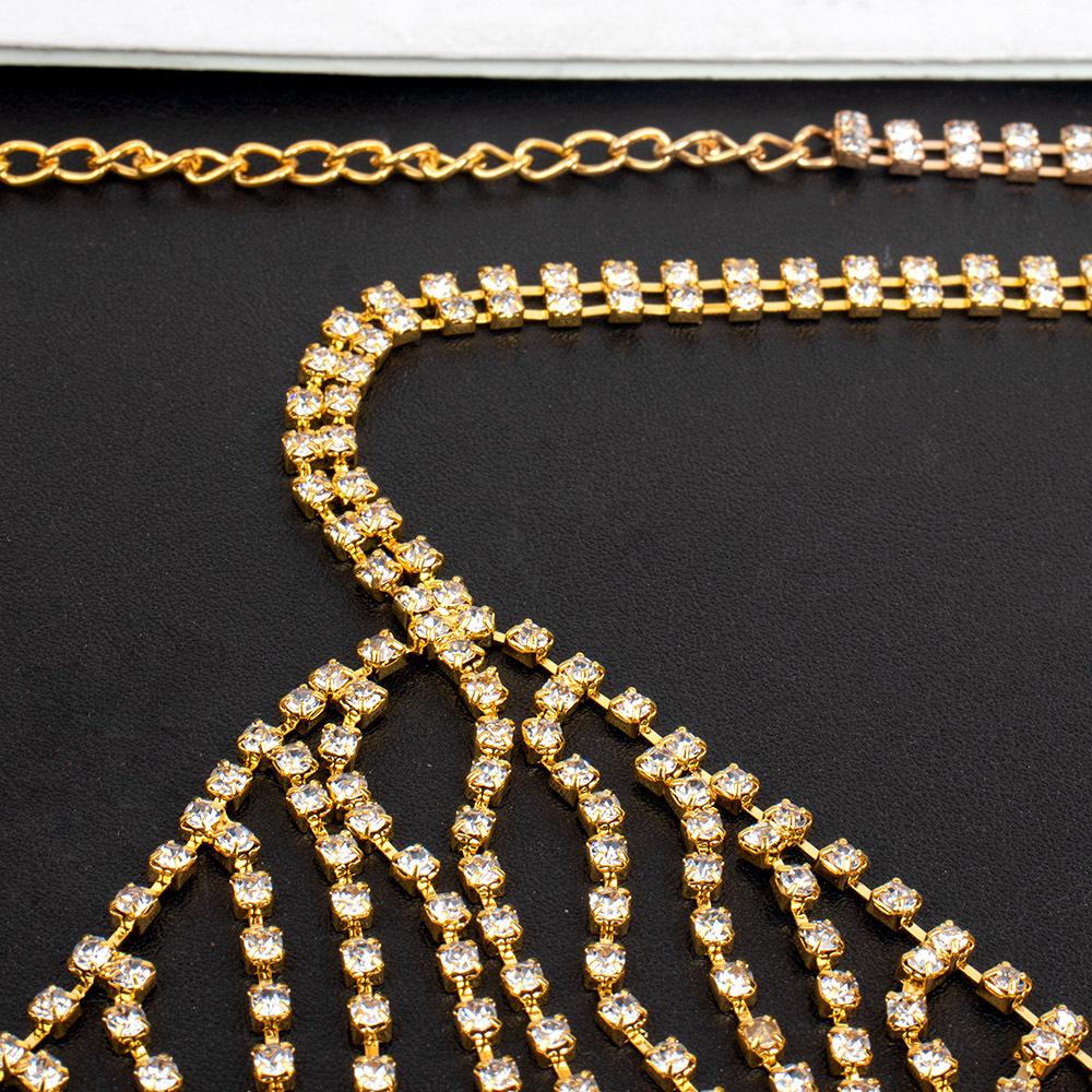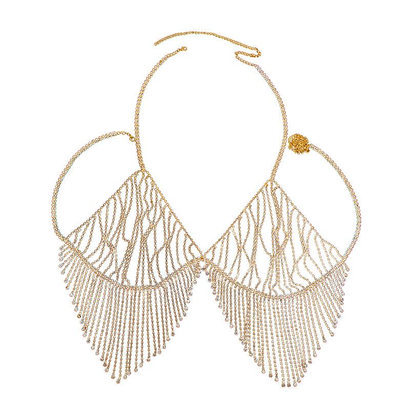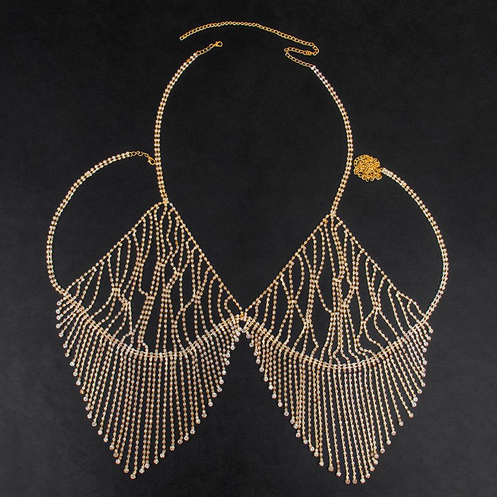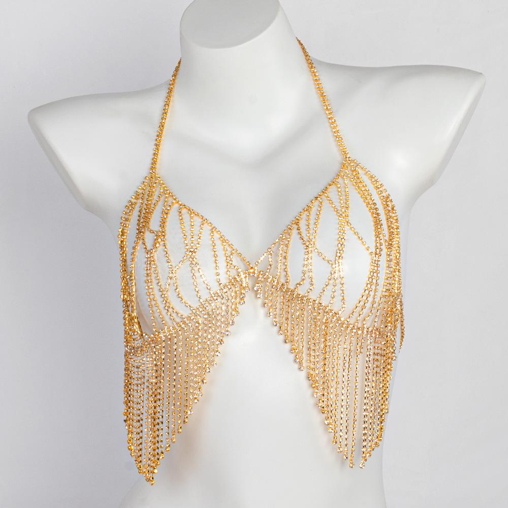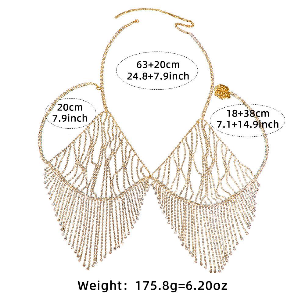 Cadena de pecho con borlas de diamantes de imitación para mujer, accesorio sexy con huecos para fiesta nocturna, sujetador de diamantes completo, cadena corporal europea y americana