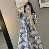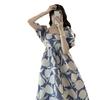 Vestido de verano 2023 estilo francés, nuevo, de moda, de longitud media, de alta gama, con estampado de mangas abullonadas, pequeño, combinable con todo para mujer
