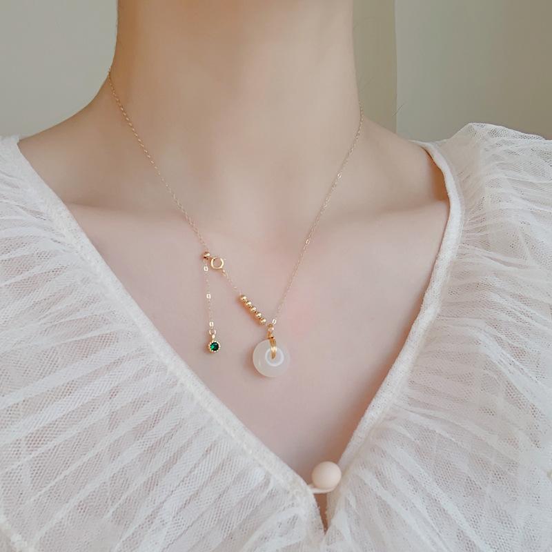 Collar de jade Hetian de celebridad en línea en vivo de Tiktok para mujer, hebilla de seguridad, cadena para clavícula, novias, colgante chapado en oro de 18 quilates al por mayor