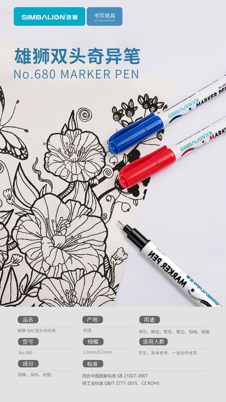 Pluma Extraña Oleosa de Doble Punta Lion 680 Marcador Industrial Pequeña Pluma de Gancho de Doble Punta Pluma Marcadora para CD Pluma de Trazo