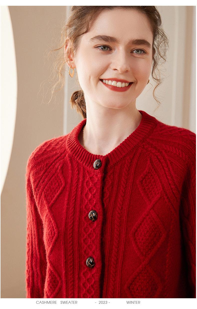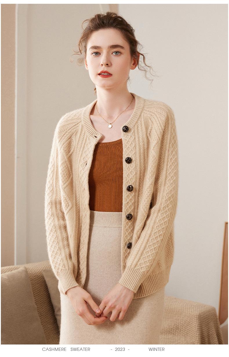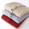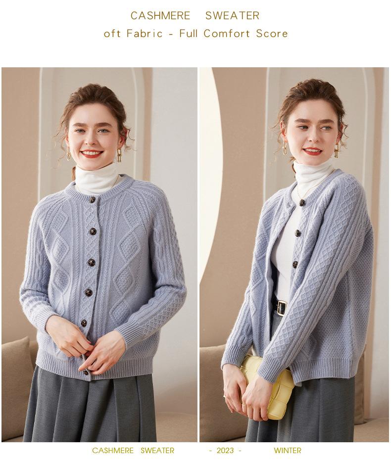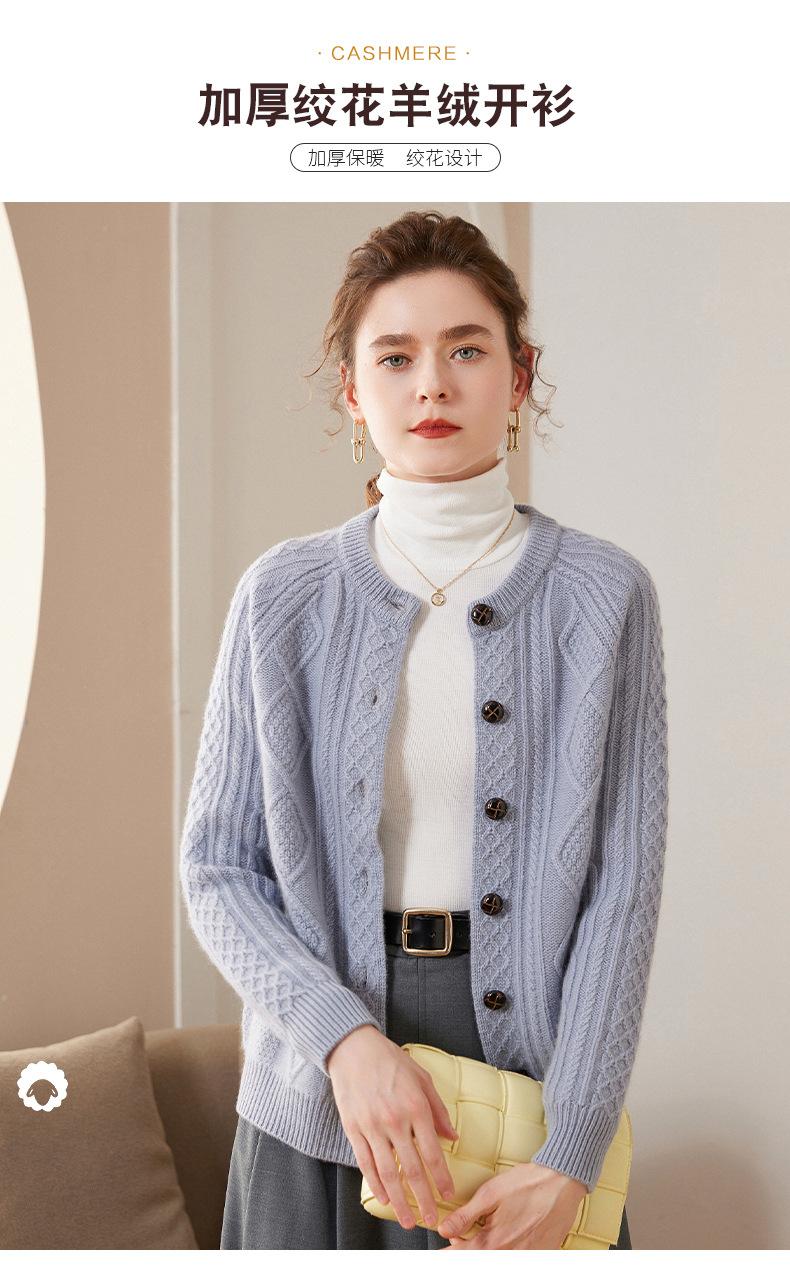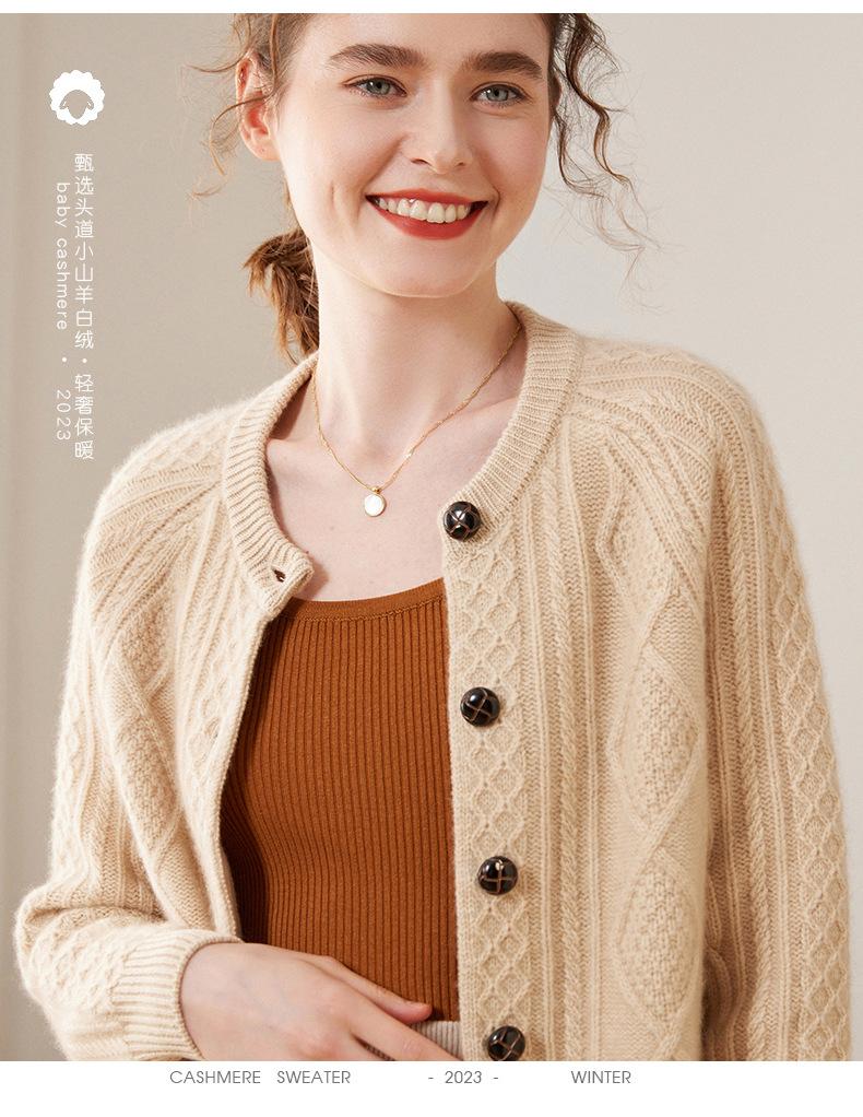 Cárdigan de cachemira gruesa, otoño e invierno 2023, nueva camisa de cuello redondo torcida para mujer, abrigo corto de estilo suave con diamantes