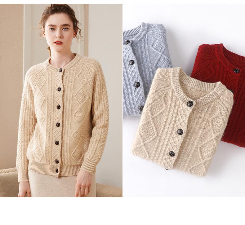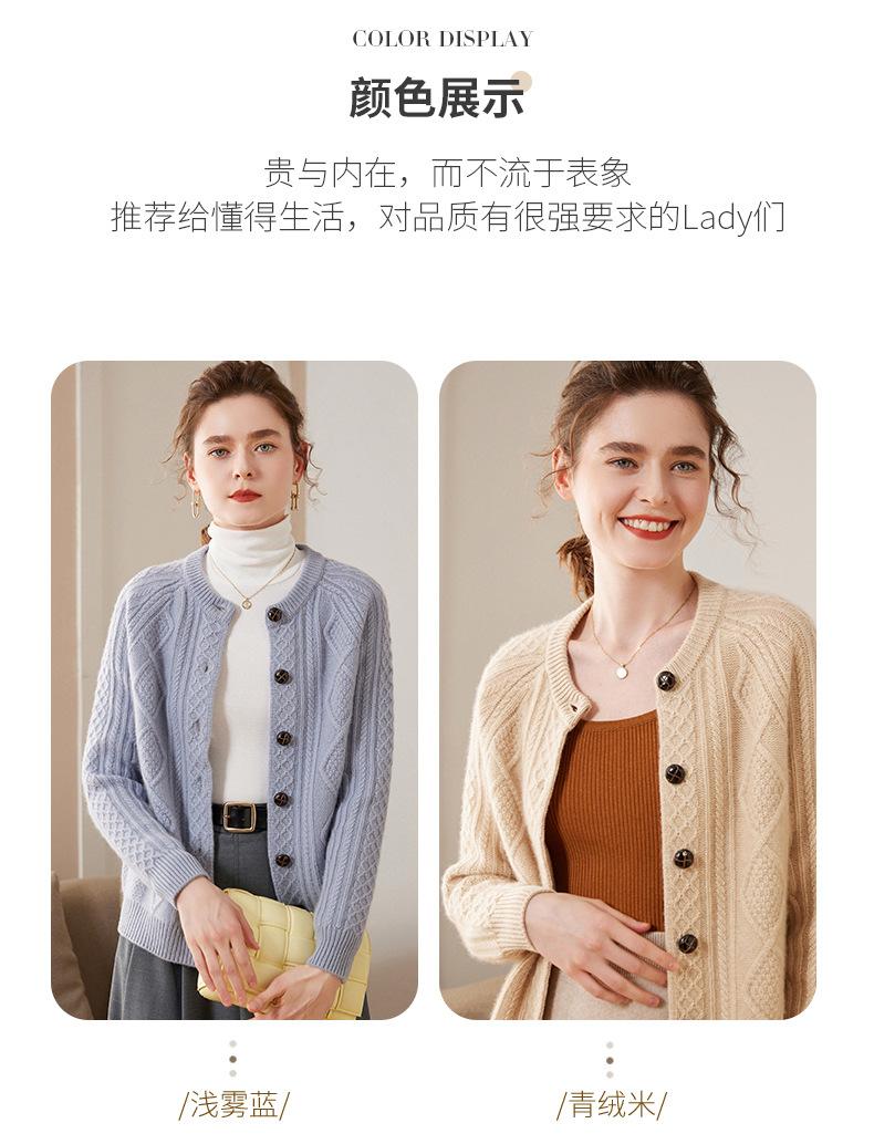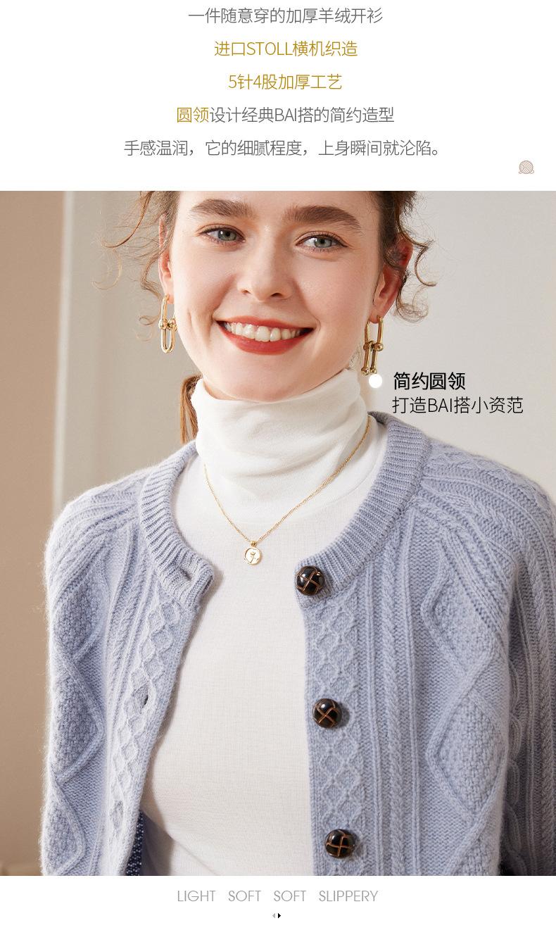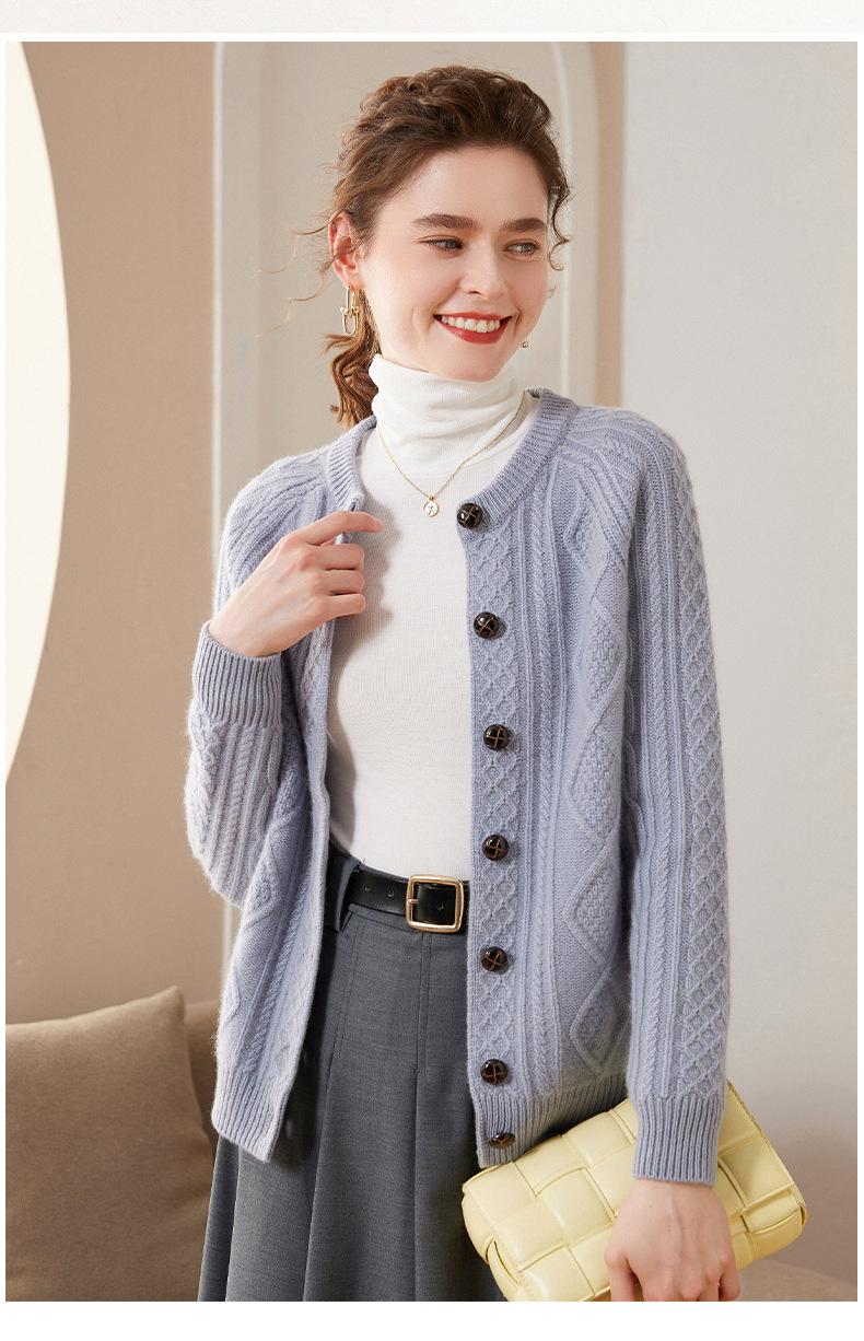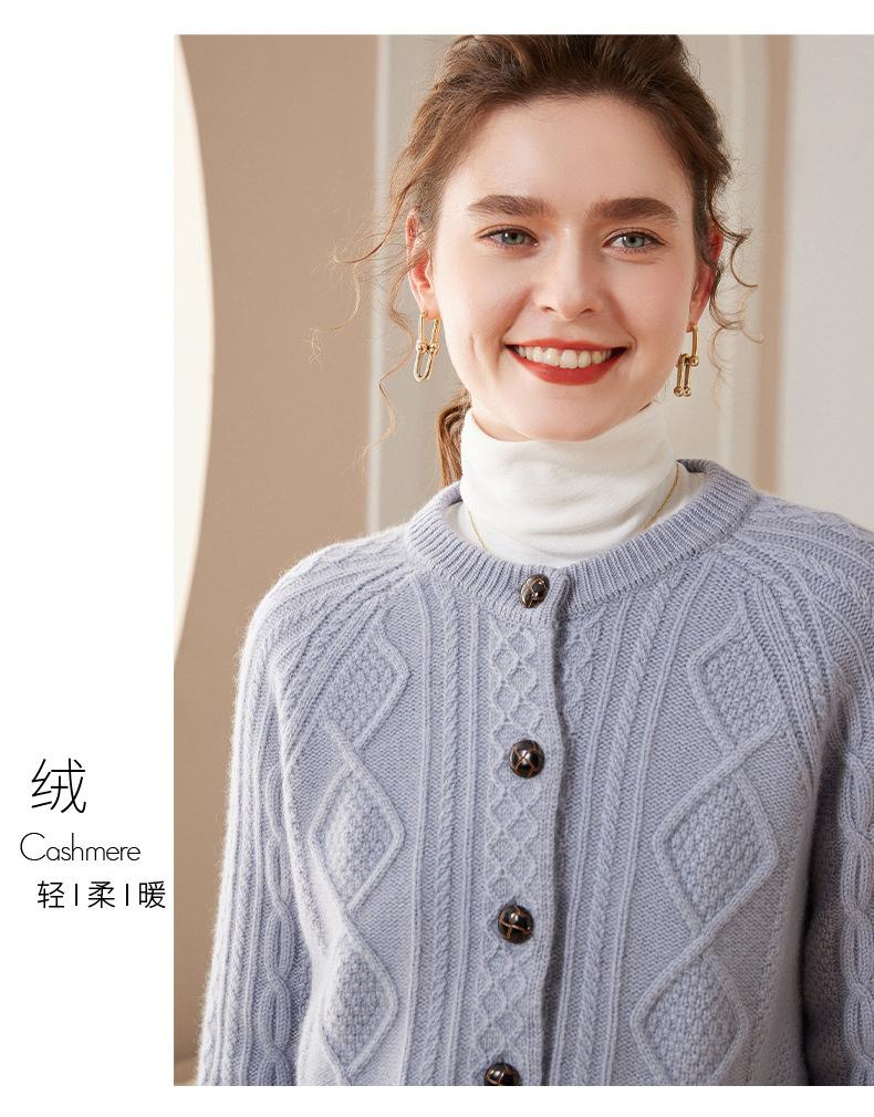 Cárdigan de cachemira gruesa, otoño e invierno 2023, nueva camisa de cuello redondo torcida para mujer, abrigo corto de estilo suave con diamantes