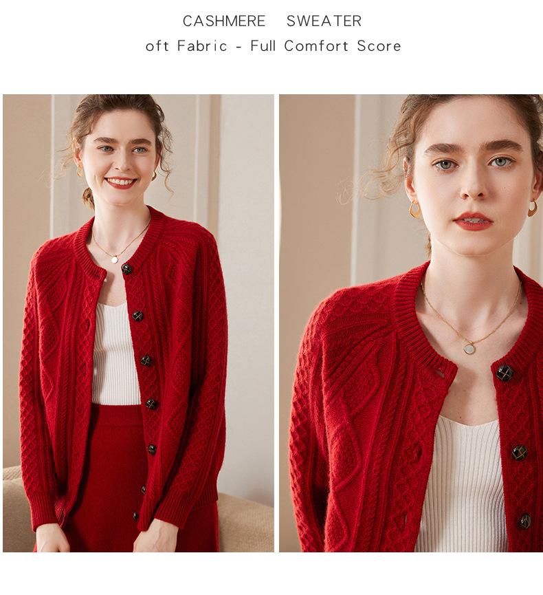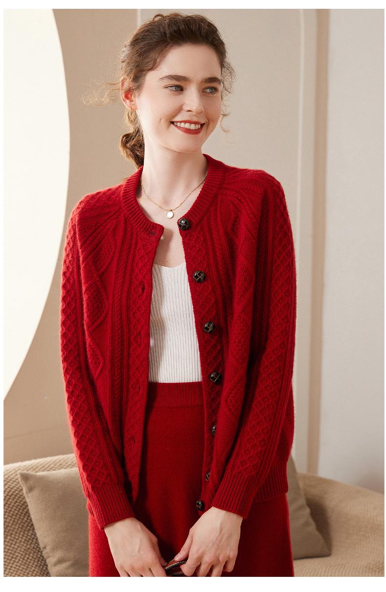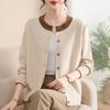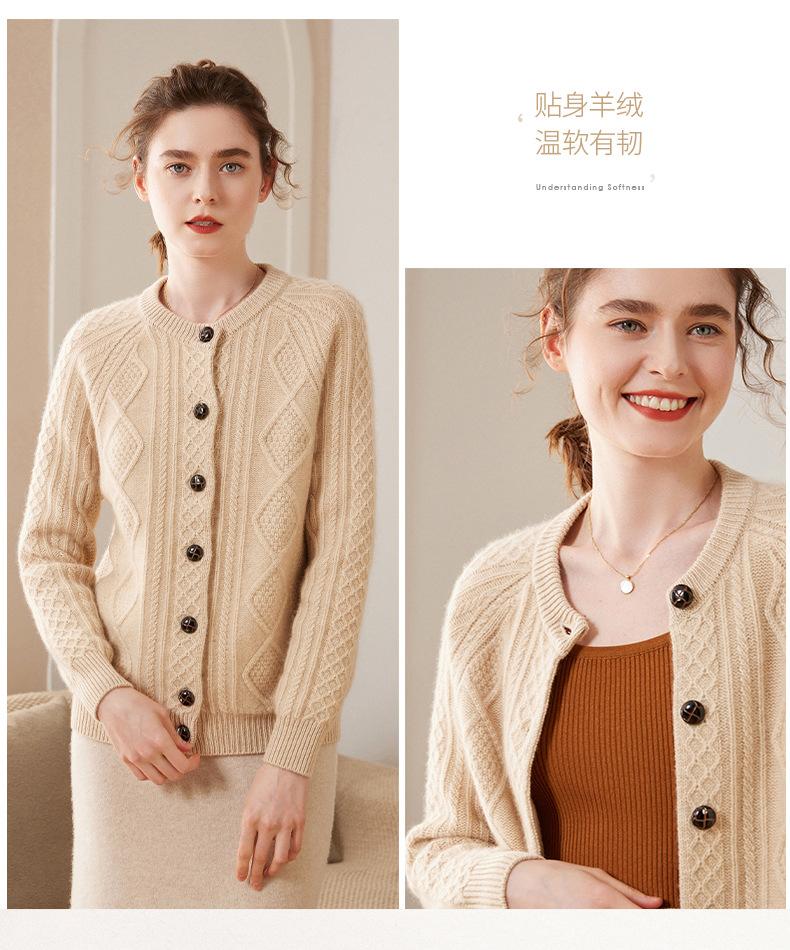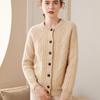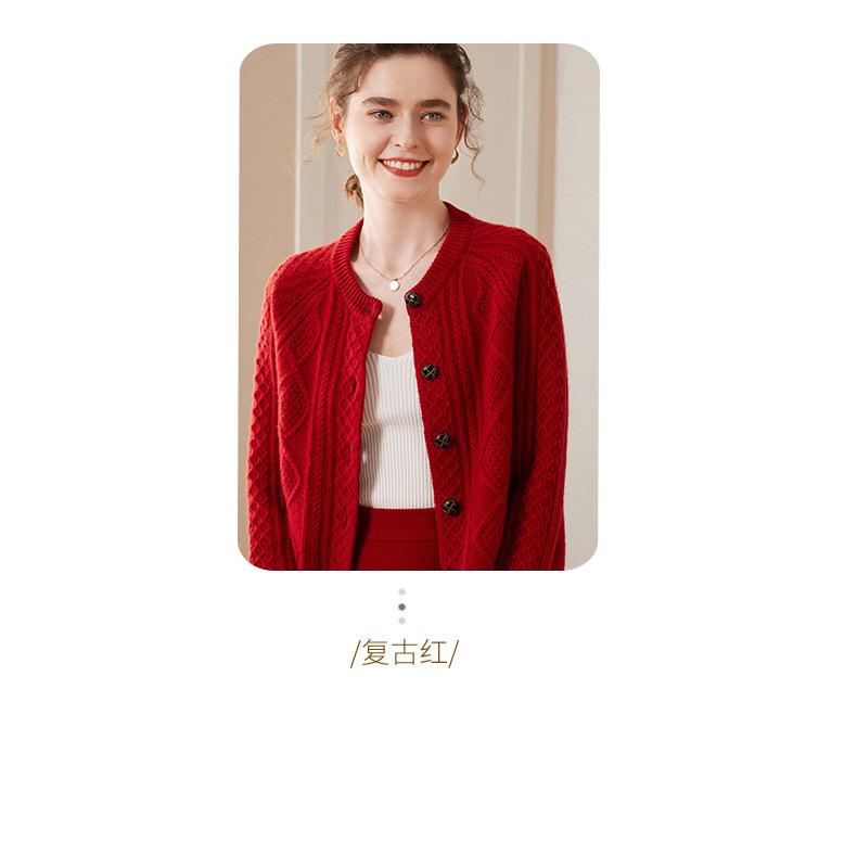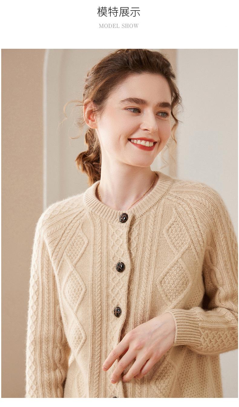 Cárdigan de cachemira gruesa, otoño e invierno 2023, nueva camisa de cuello redondo torcida para mujer, abrigo corto de estilo suave con diamantes