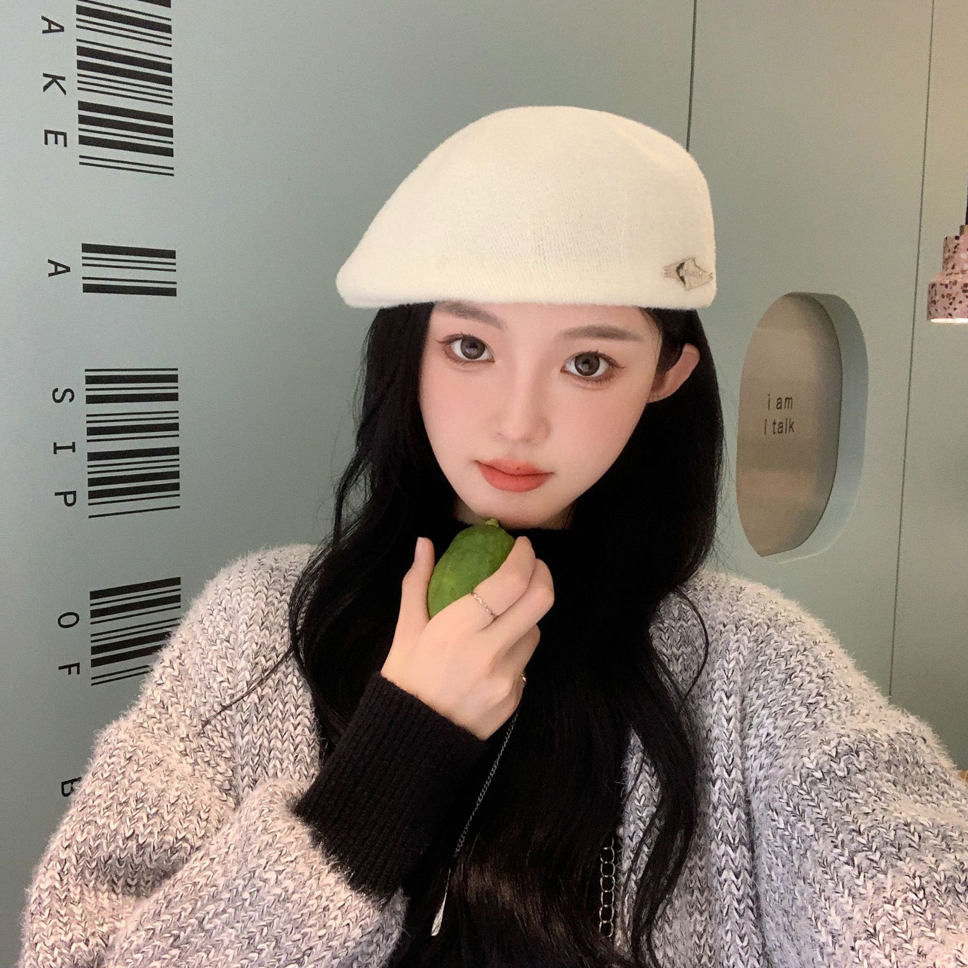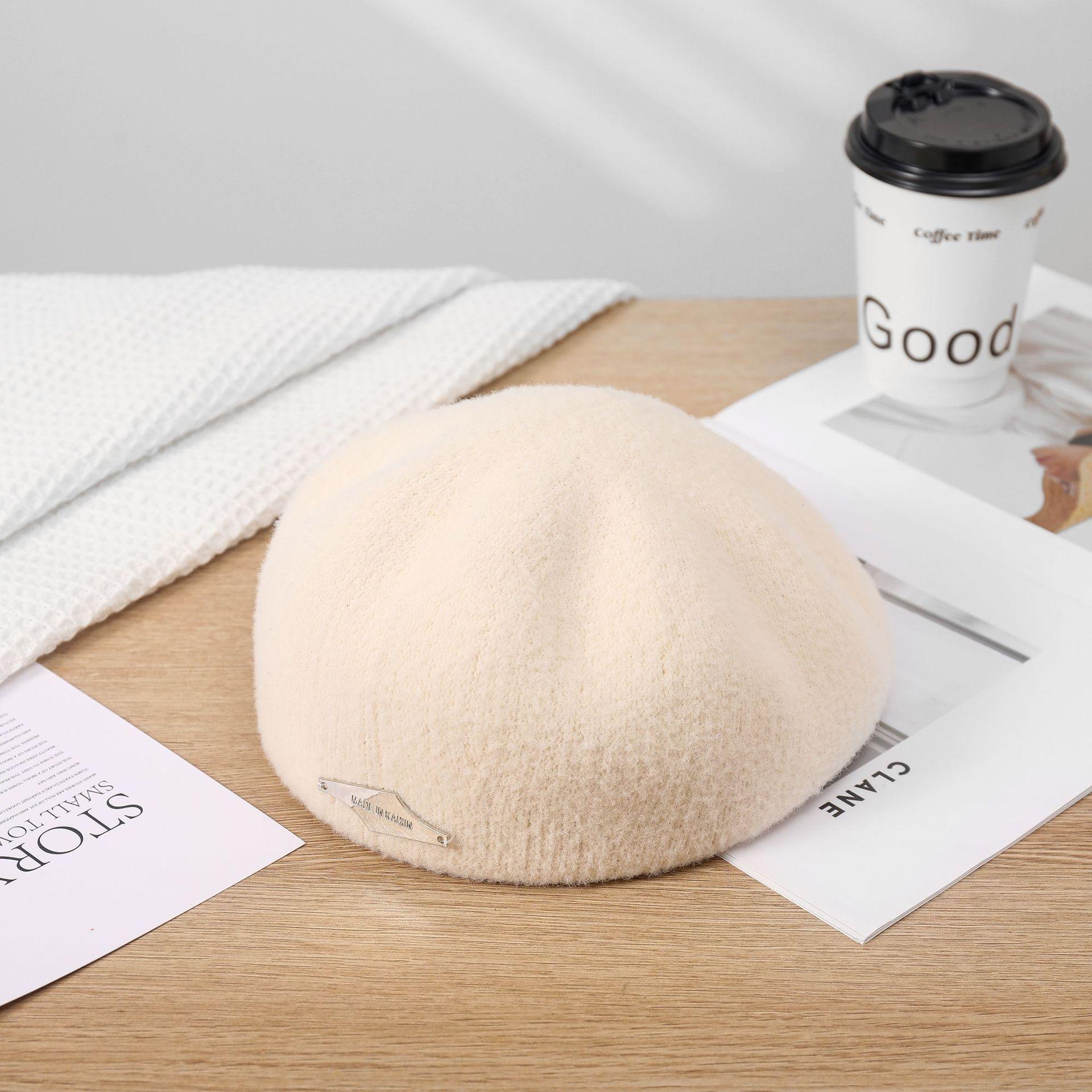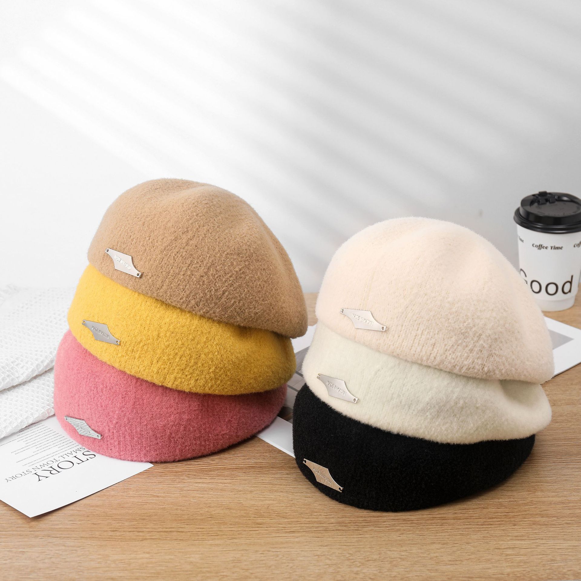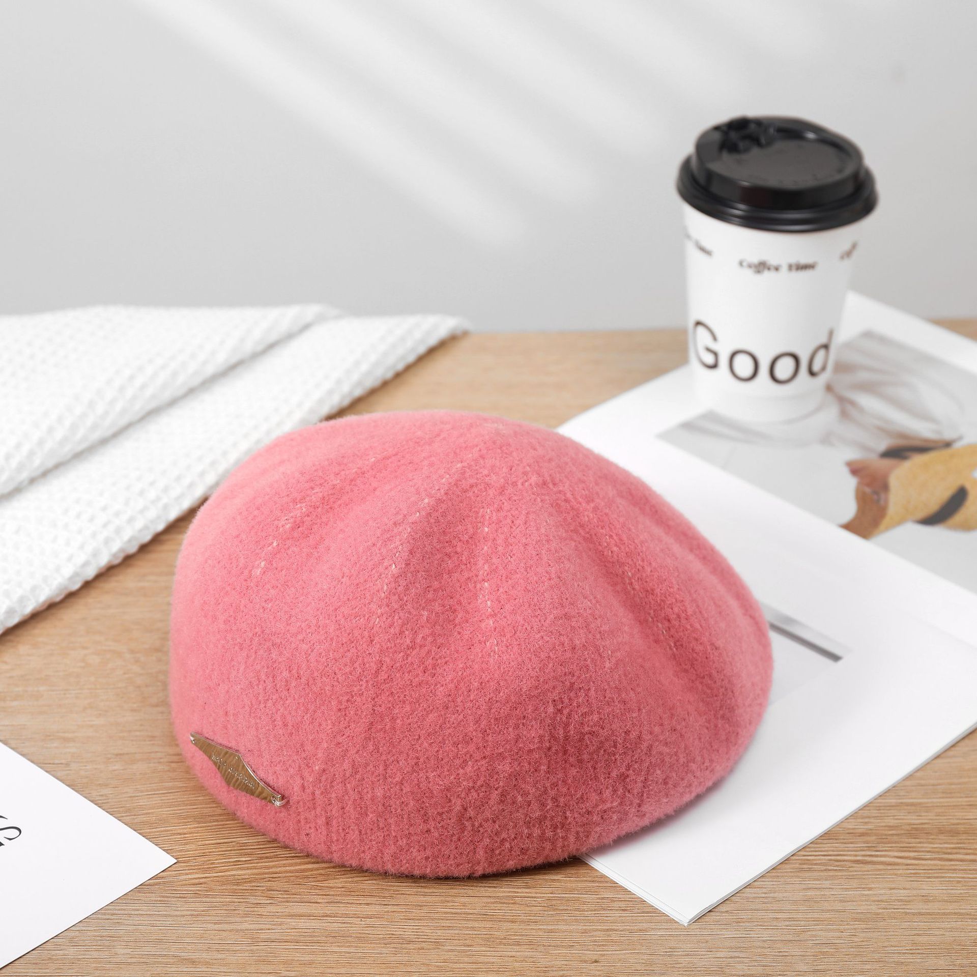 Otoño Nuevo Boina de Letra Lindo Rosa Lana Gorra Exhibidora de Cara Moda para Mujer Vacaciones Cálido Gorra Hacia Adelante