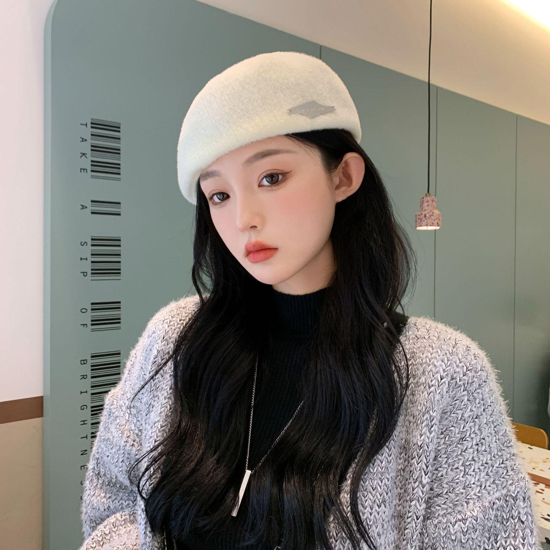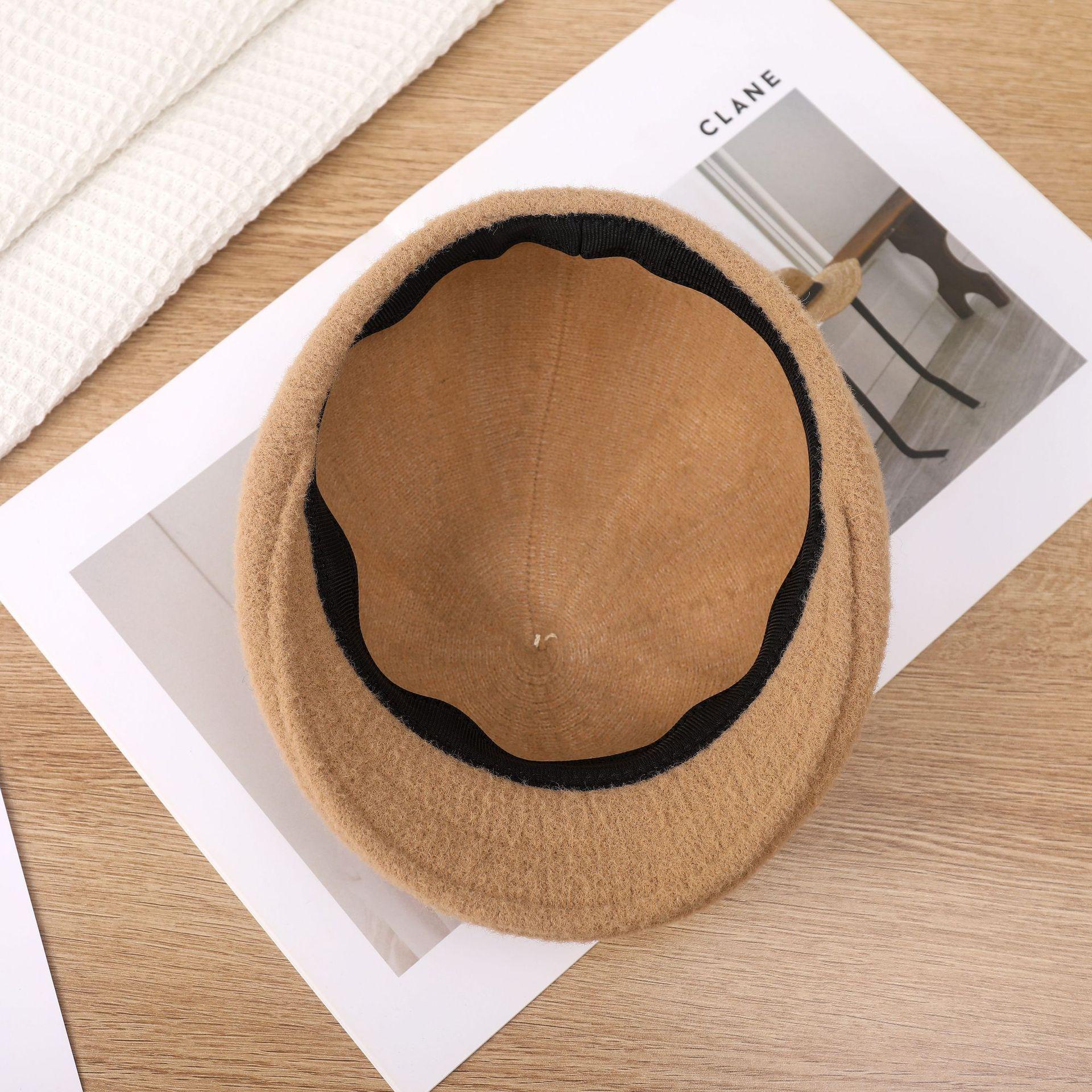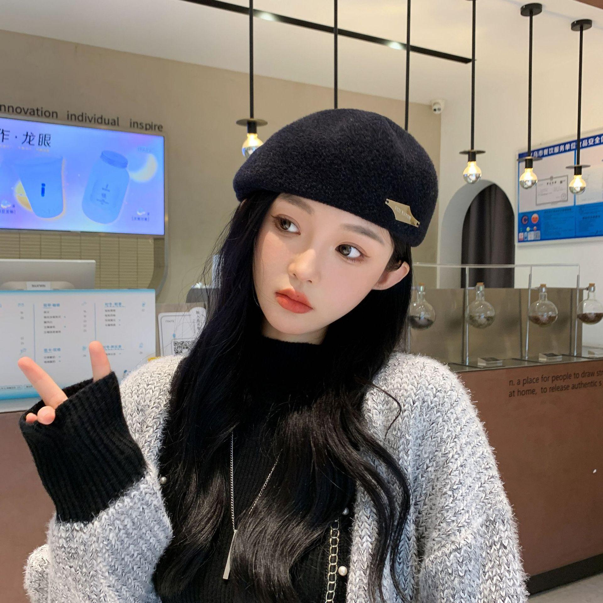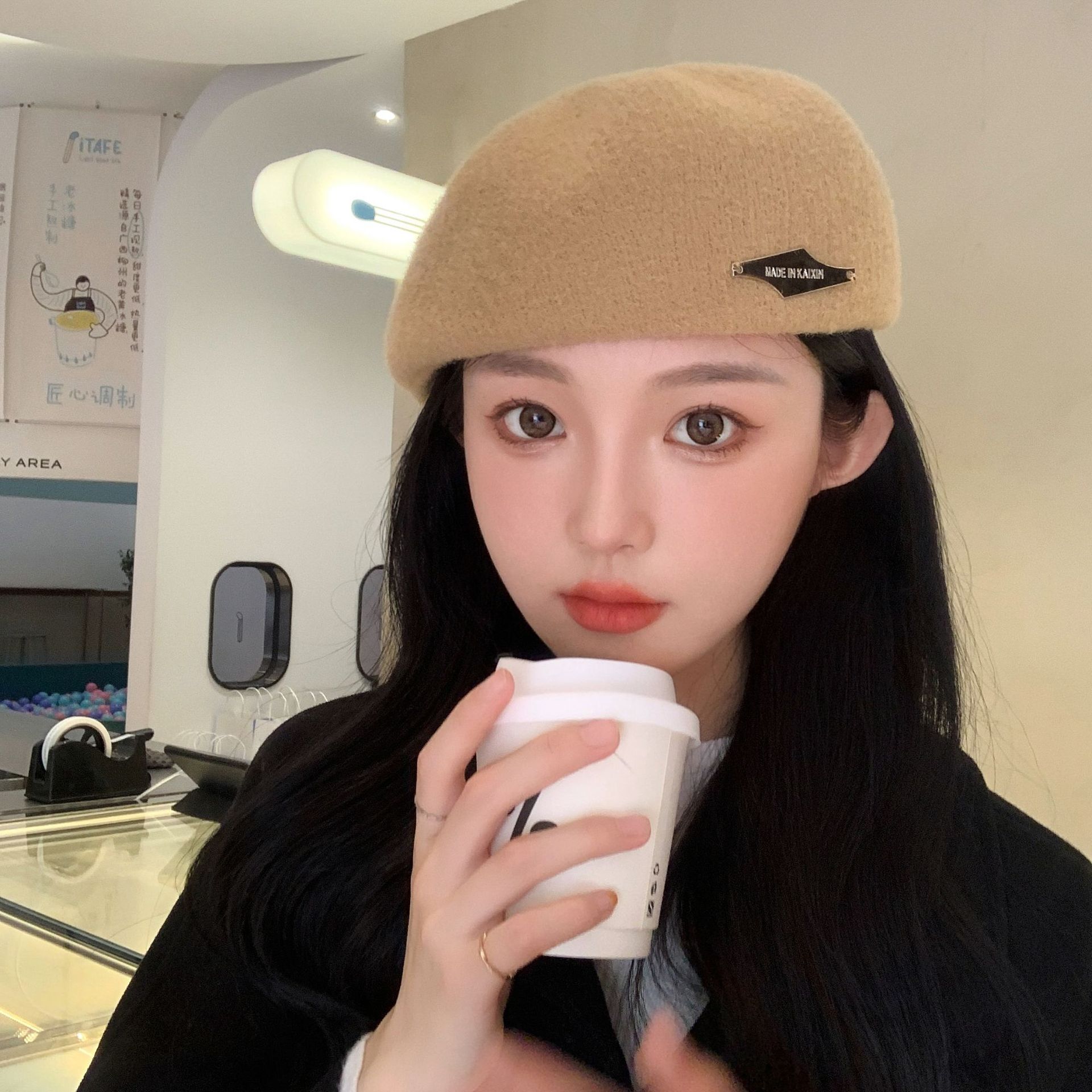 Otoño Nuevo Boina de Letra Lindo Rosa Lana Gorra Exhibidora de Cara Moda para Mujer Vacaciones Cálido Gorra Hacia Adelante