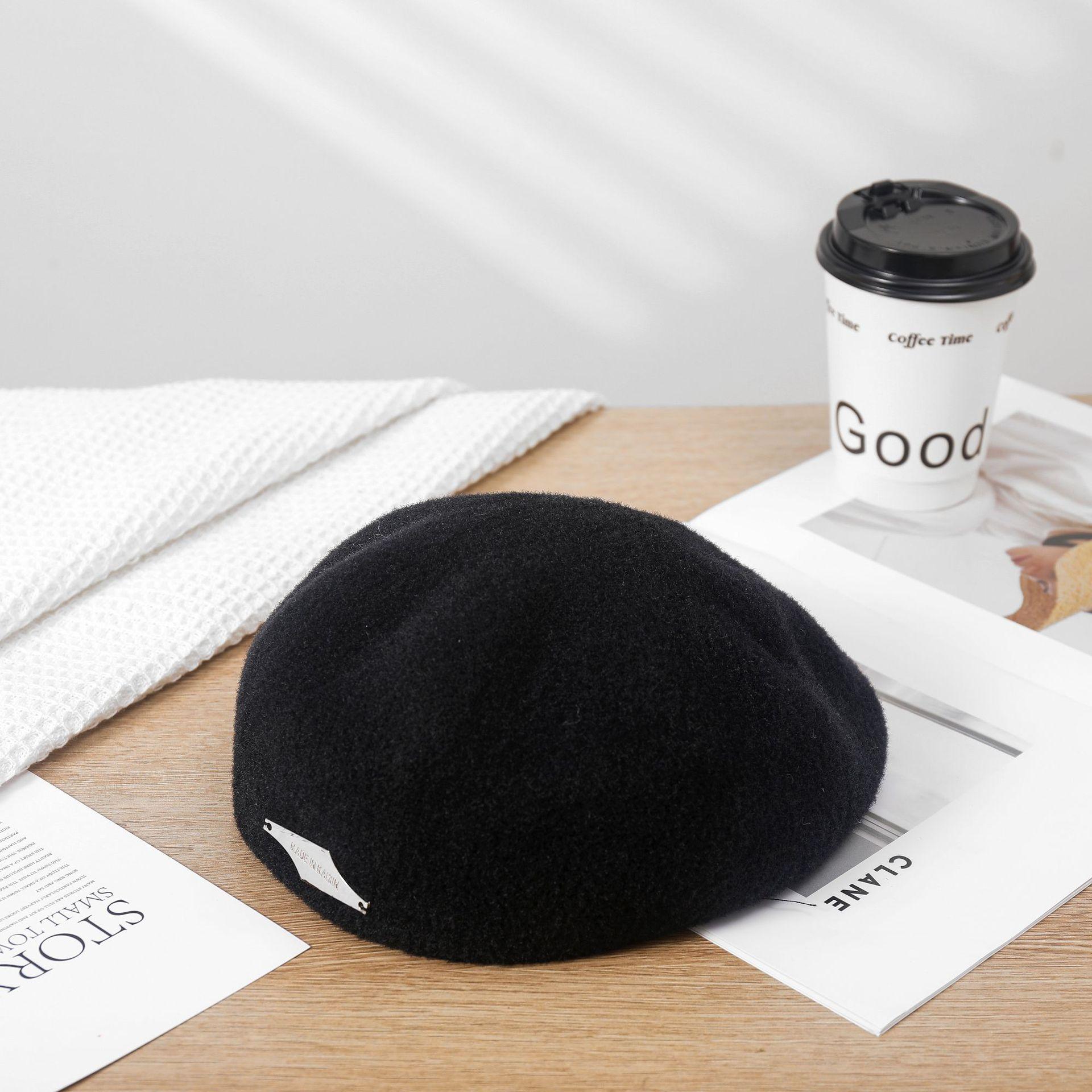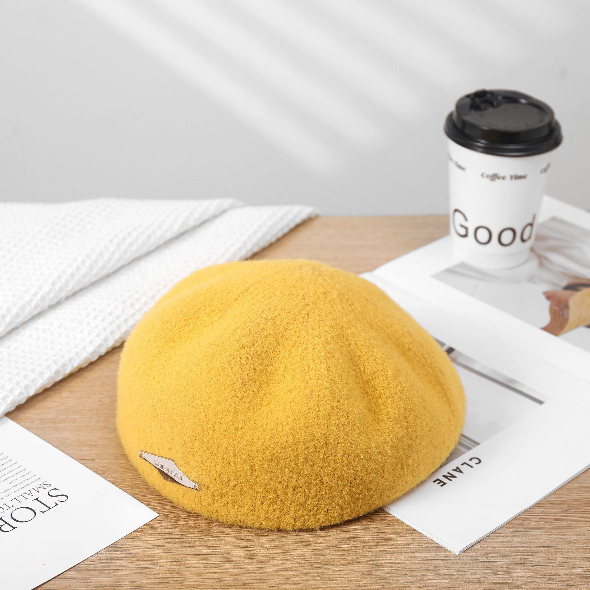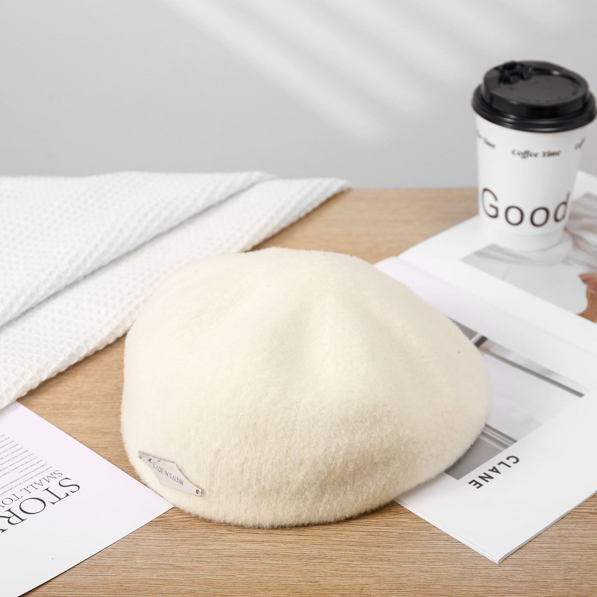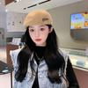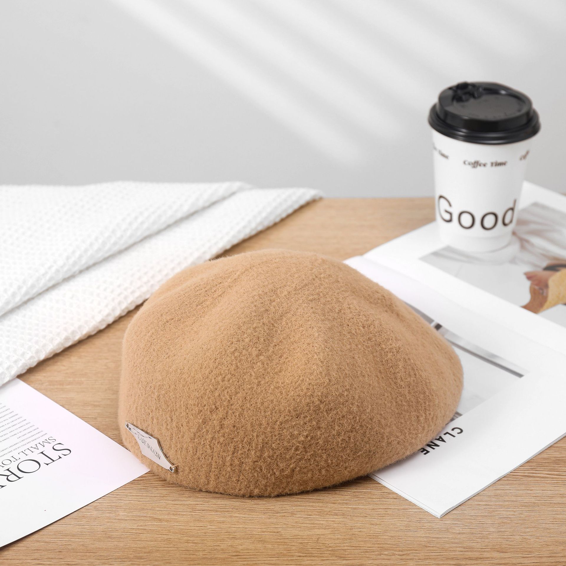 Otoño Nuevo Boina de Letra Lindo Rosa Lana Gorra Exhibidora de Cara Moda para Mujer Vacaciones Cálido Gorra Hacia Adelante