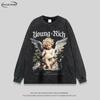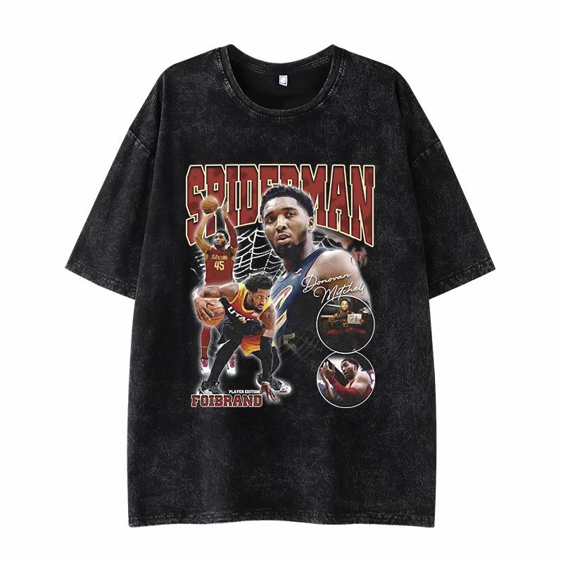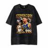 Ropa de Marca Moderna Retro Americana Vintage Lavada para Hombre con Estampado de Estrella Camiseta Holgada de Media Manga Street Hip-Hop