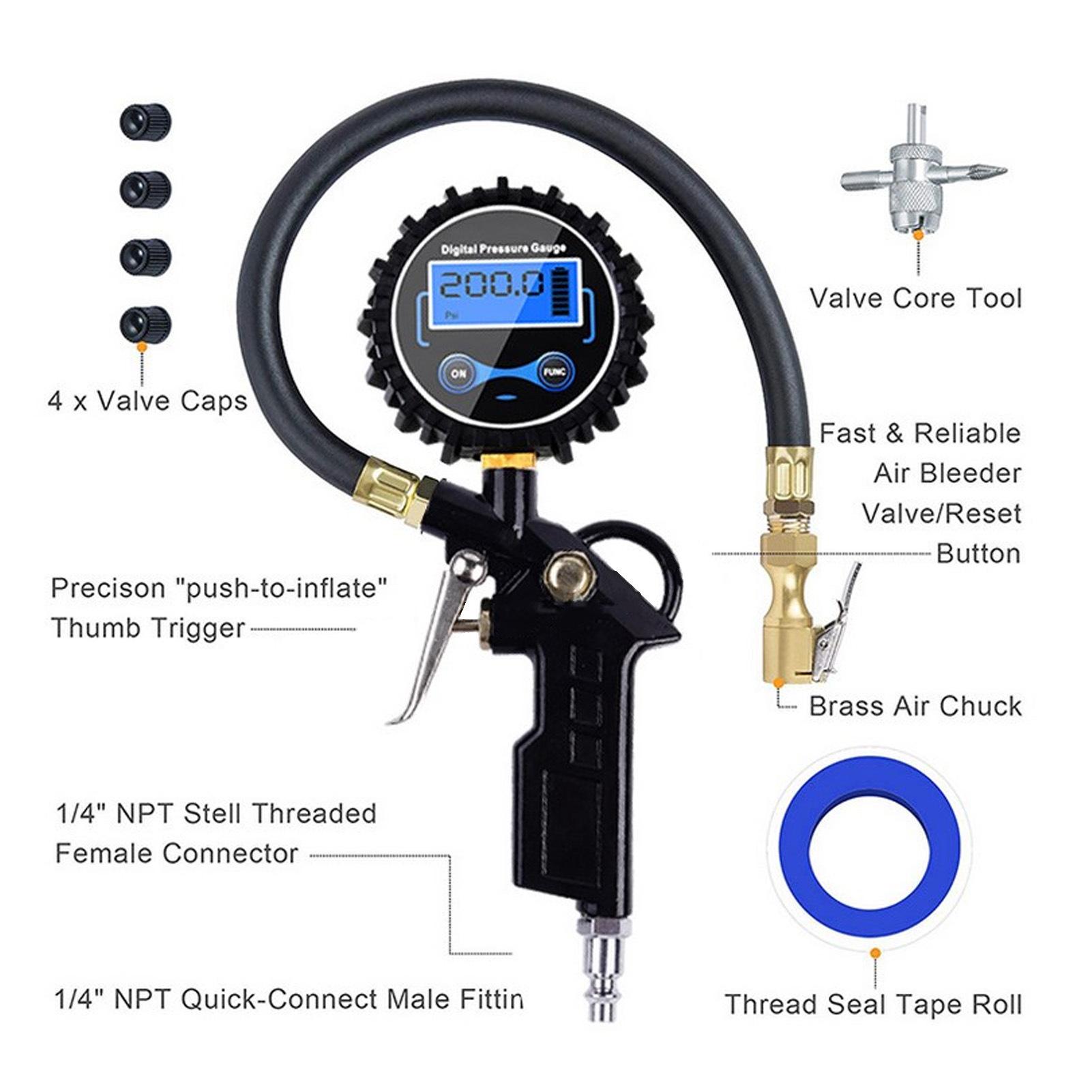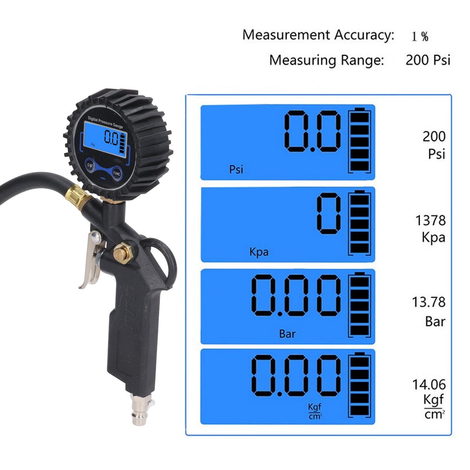 Manómetro electrónico de alta precisión manómetro de presión de neumáticos pistola de presión de neumáticos manómetro de detección de presión de neumáticos manómetro de presión de neumáticos para automóvil pistola de llenado