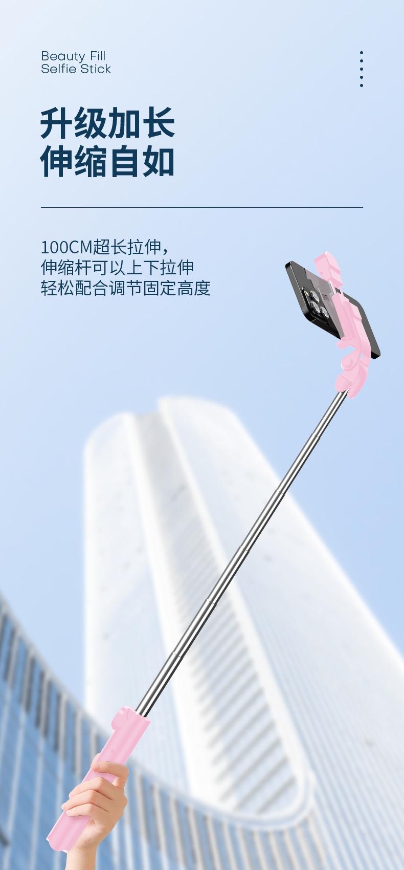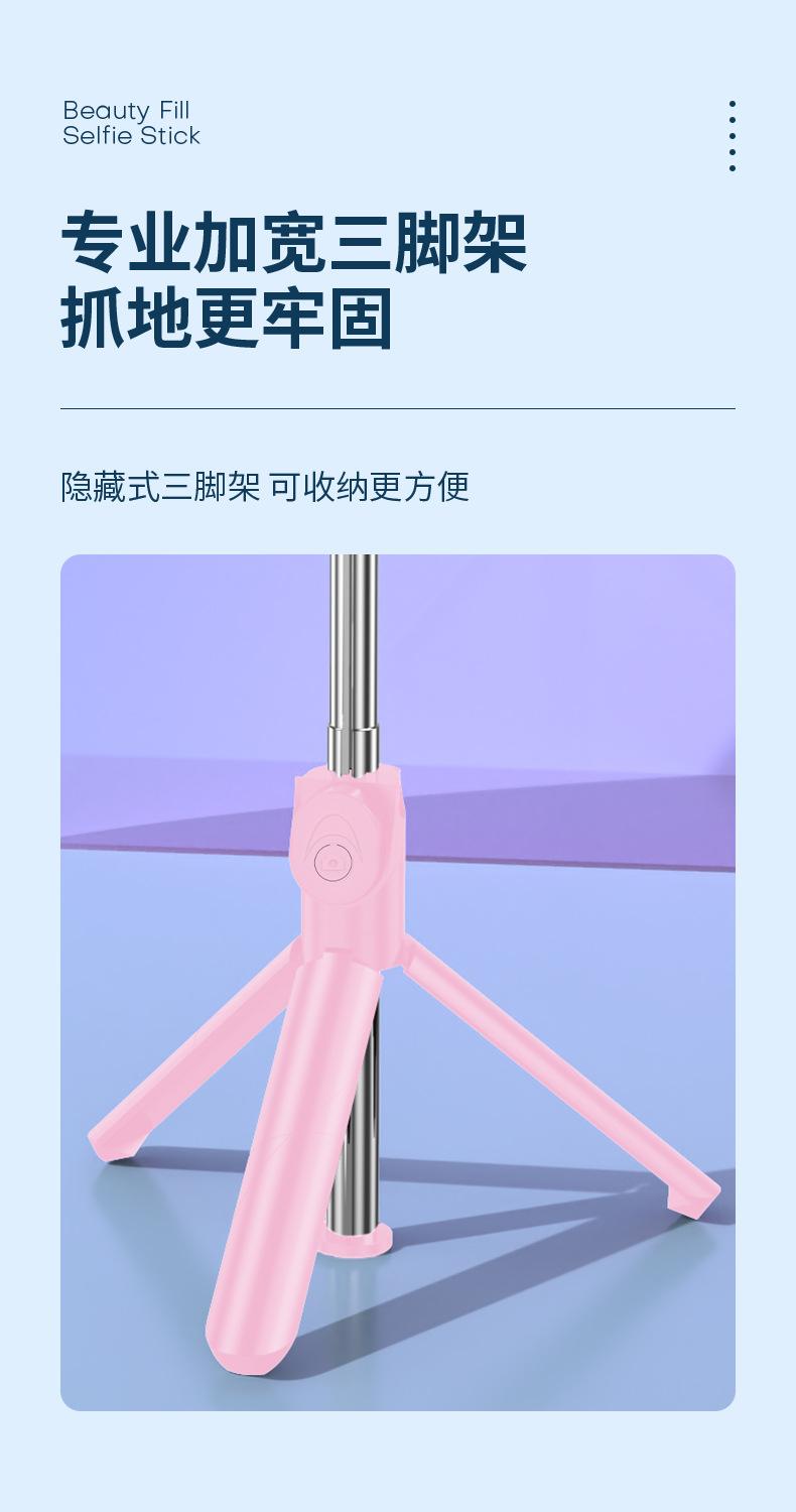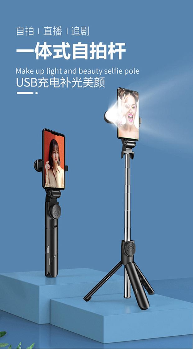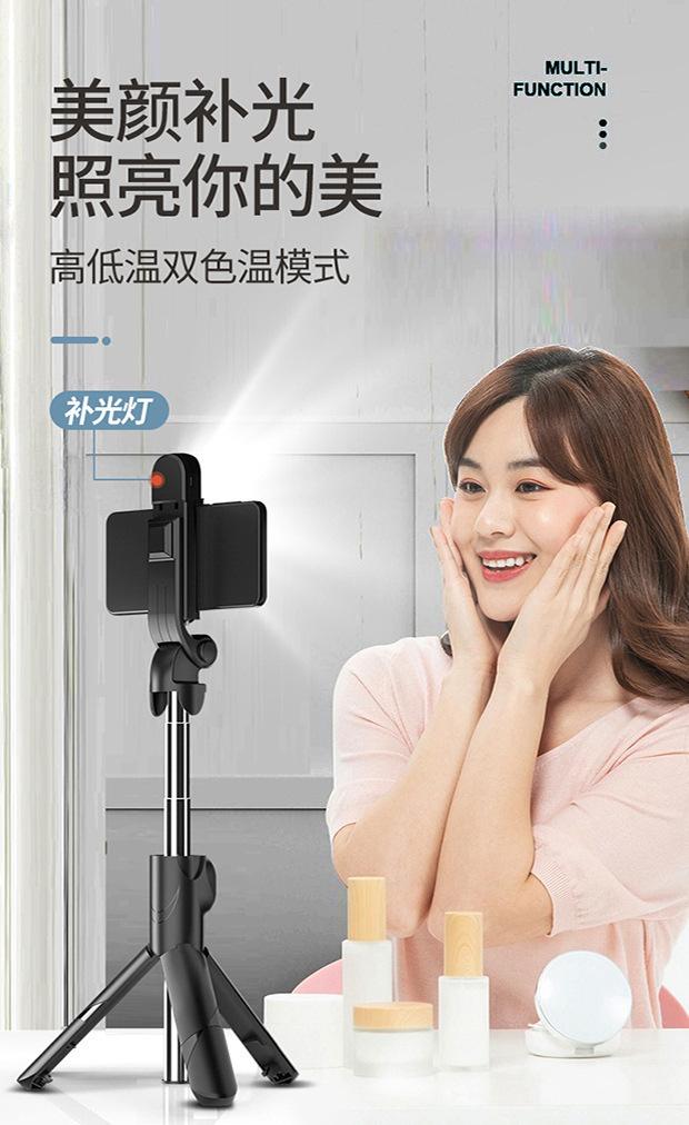 Tripie Palo Selfie Bluetooth con Soporte de Luz de Relleno Todo-En-Uno Multifuncional Horizontal y Vertical Inalámbrico Palo Selfie para Teléfono Móvil