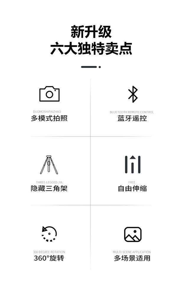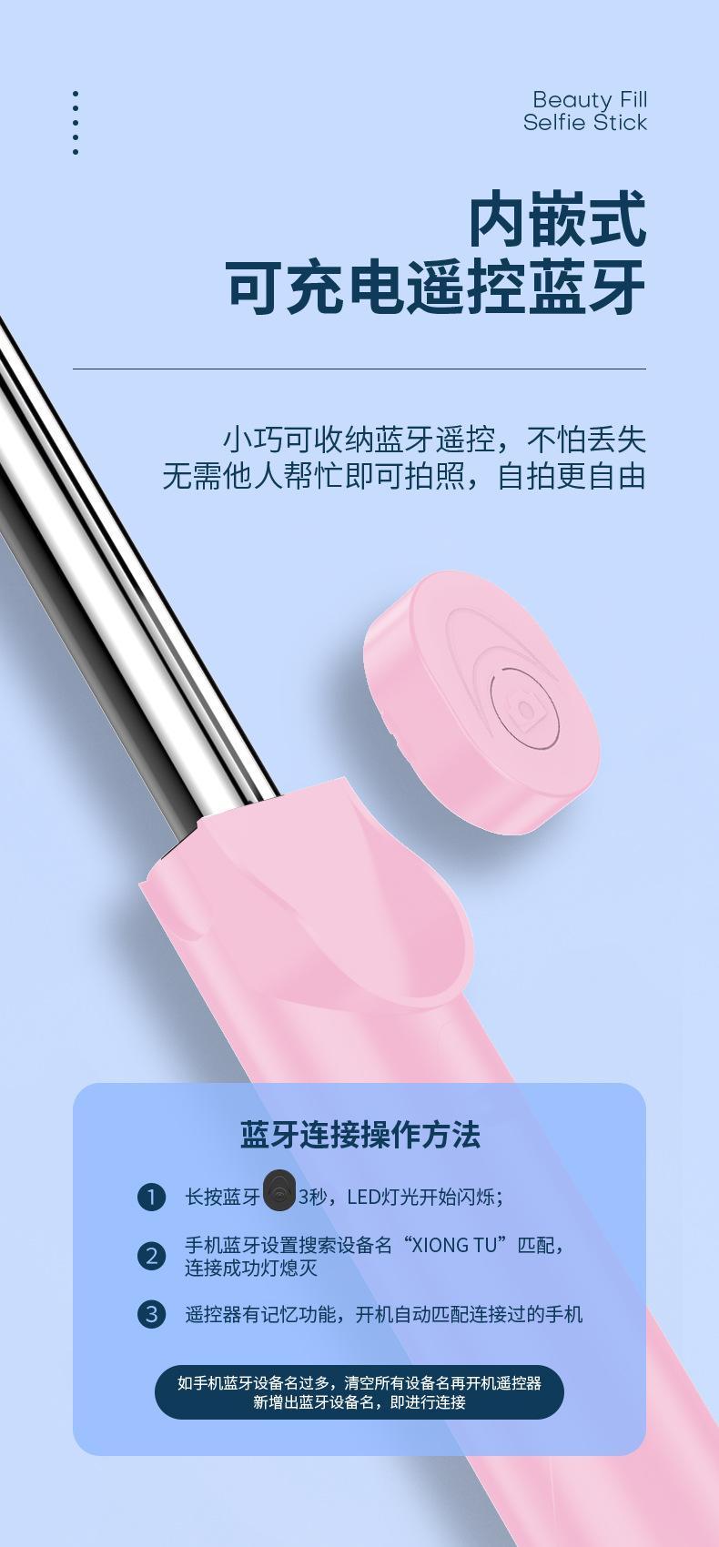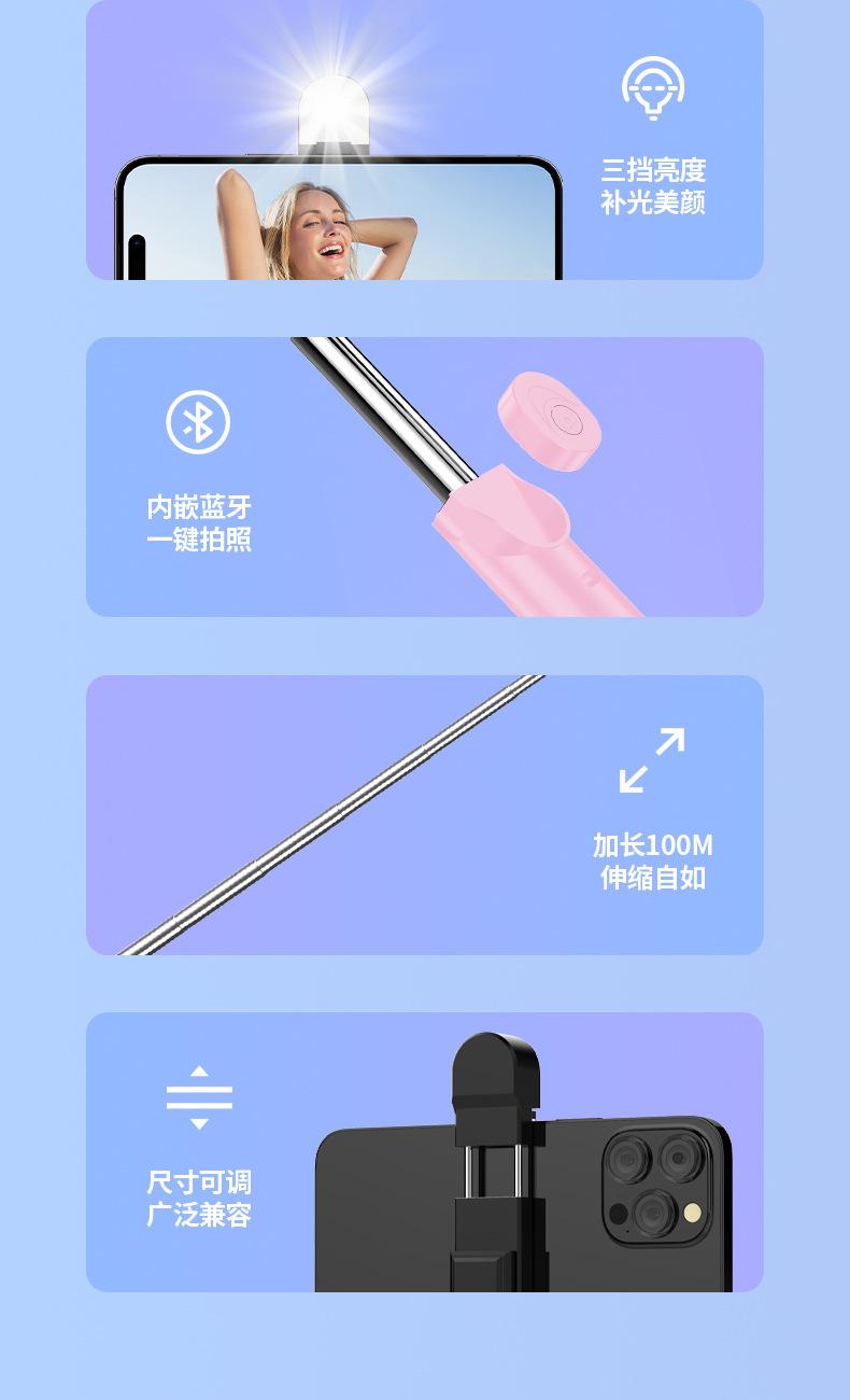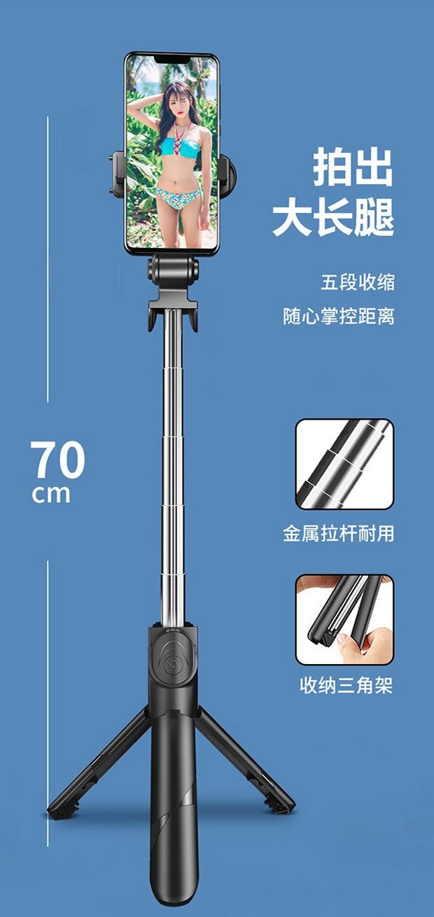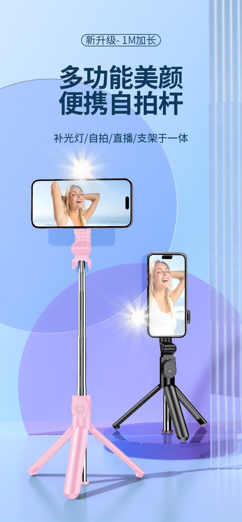 Tripie Palo Selfie Bluetooth con Soporte de Luz de Relleno Todo-En-Uno Multifuncional Horizontal y Vertical Inalámbrico Palo Selfie para Teléfono Móvil