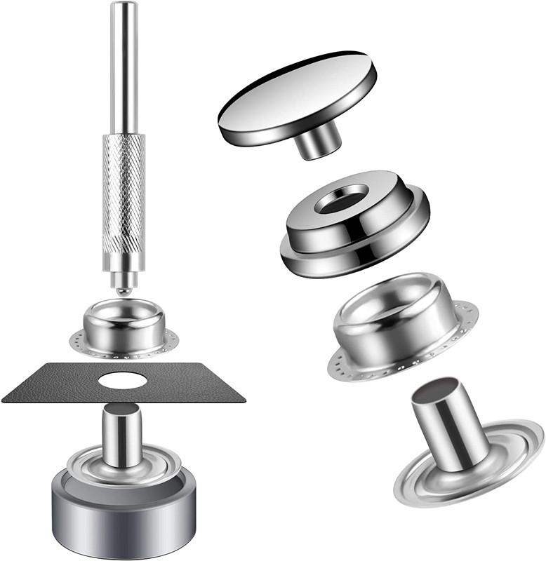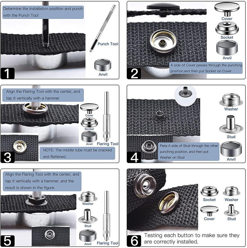 Cantidad: 37 juegos de botones (un juego contiene 4 partes, es decir, 148 piezas) + juego de herramientas de 3 piezas