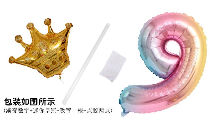 Globo digital con corona degradada de 32 pulgadas transfronterizo, globo decorativo para cumpleaños infantil, globo digital con corona de película de aluminio.