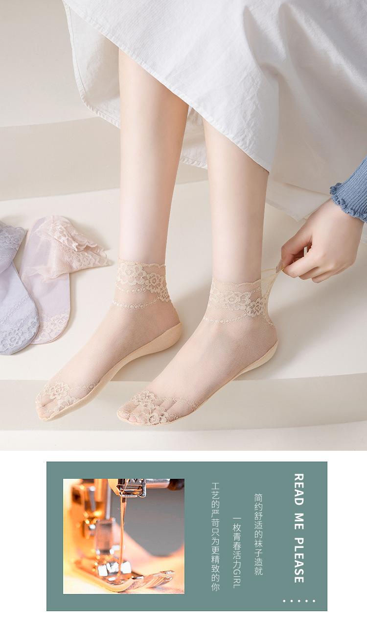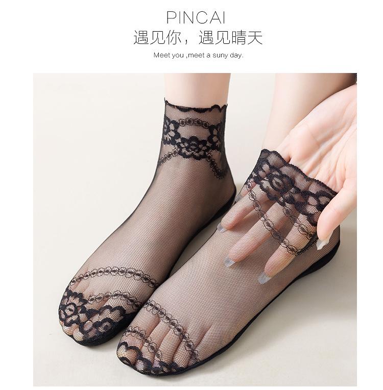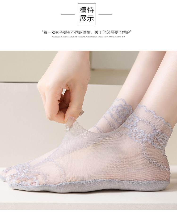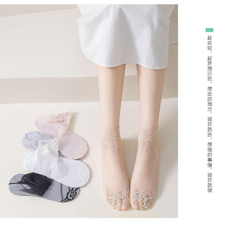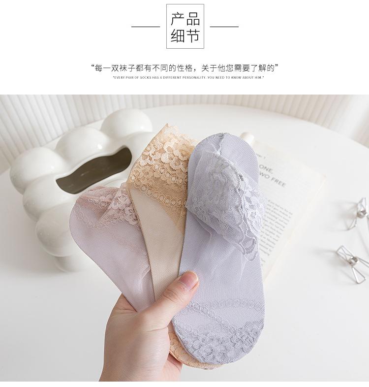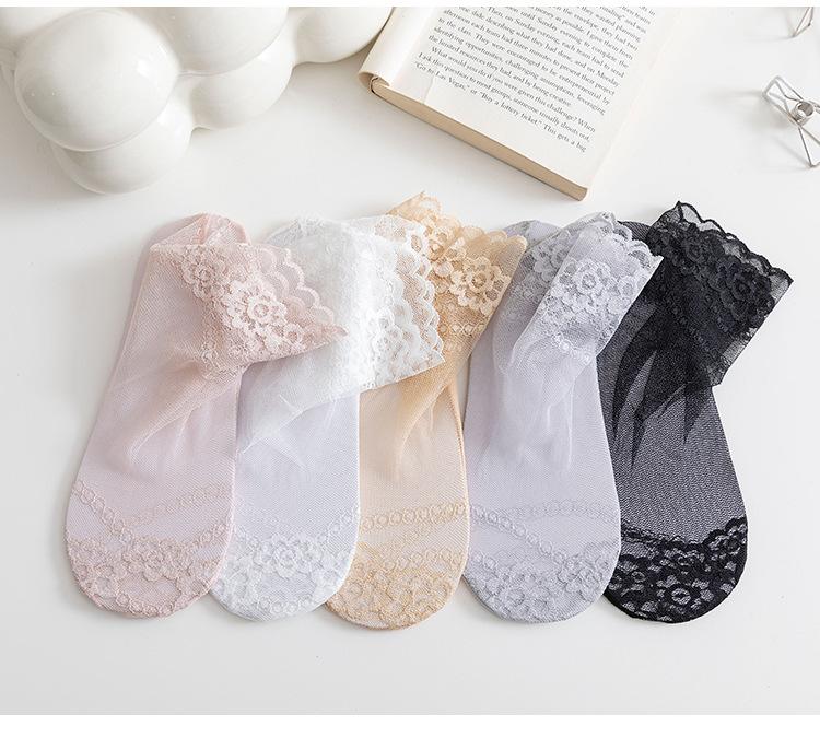 Calcetines de Encaje Calcetines Cortos de Mujer Verano Delgados Calcetines de Barco de Mujer Antideslizantes Calcetines de Encaje de Tubo Corto Estudiantes Verano