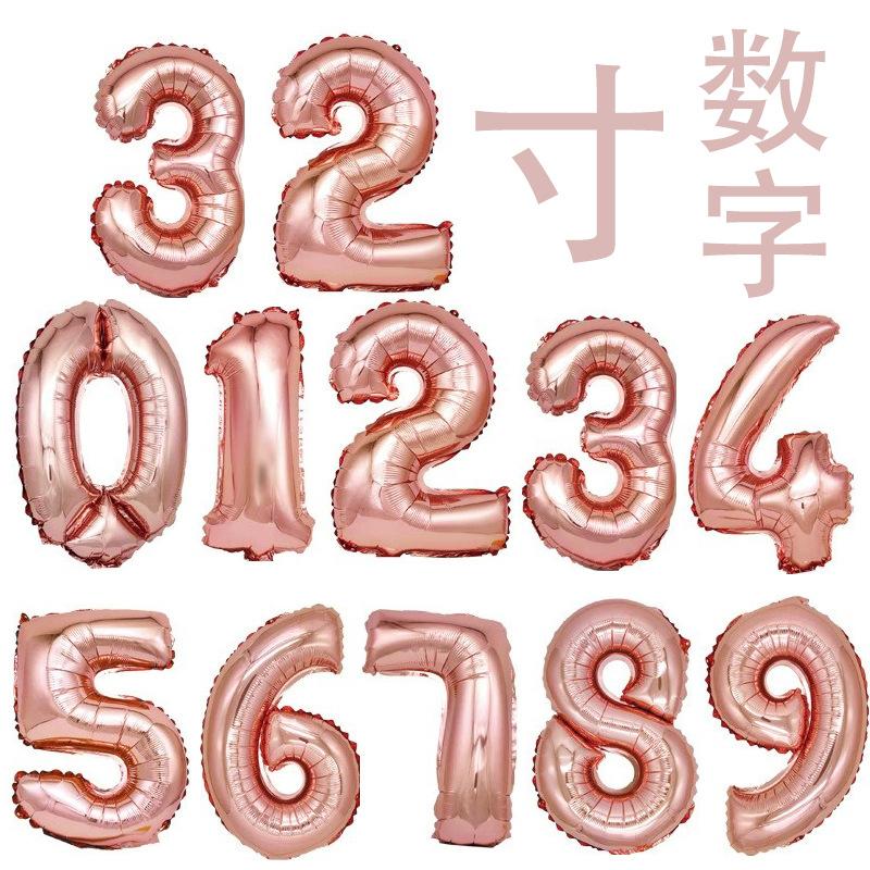 Globo de aluminio transfronterizo de Amazon, globo digital de 32 pulgadas en oro rosa, decoración para fiesta de cumpleaños, globo de película de aluminio