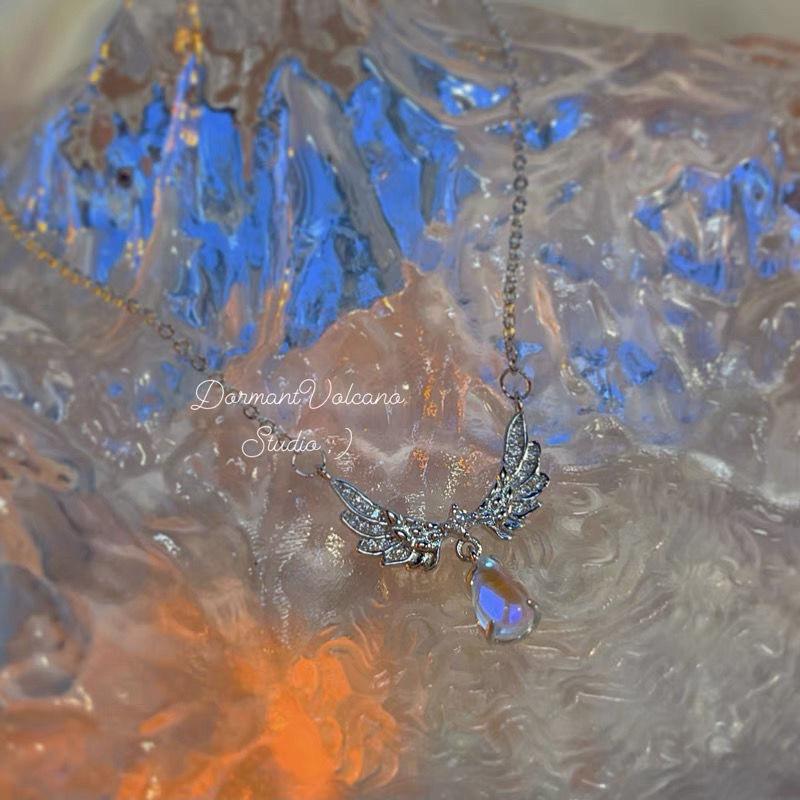 Collar Diseño Nicho Alas de Ángel para Mujer Piedra Lunar Lujo Accesible Versátil Simple Super Hada Versátil Impresionante Cadena Clavícula
