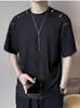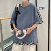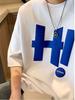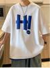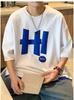 Camiseta de manga corta holgada de algodón, sencilla, moderna y de verano 2024, para hombre, con estampado de letras y base combinadas.