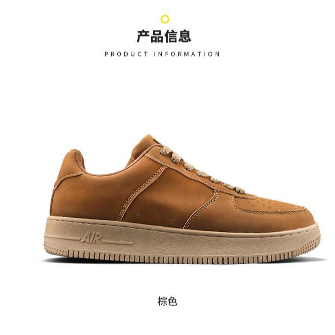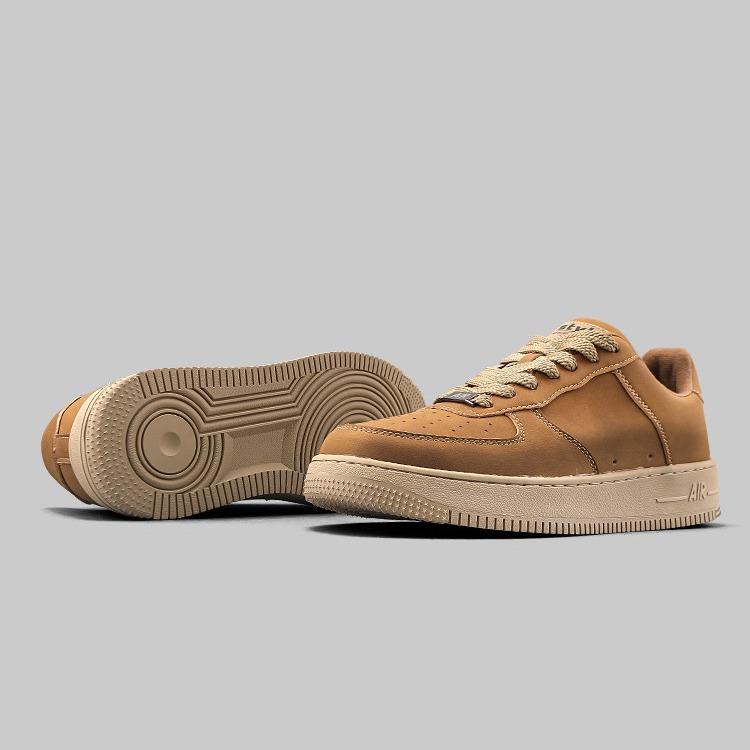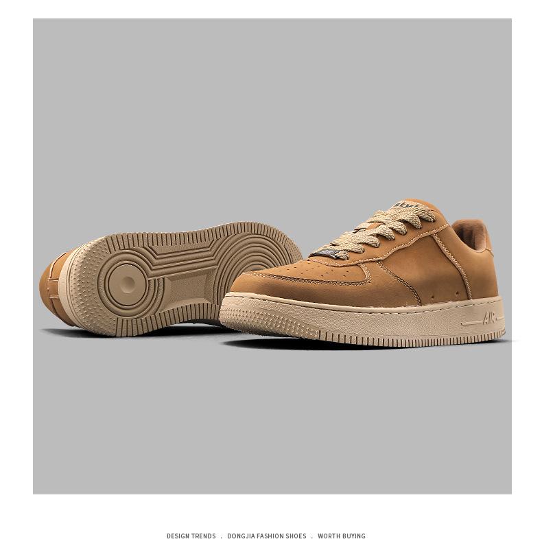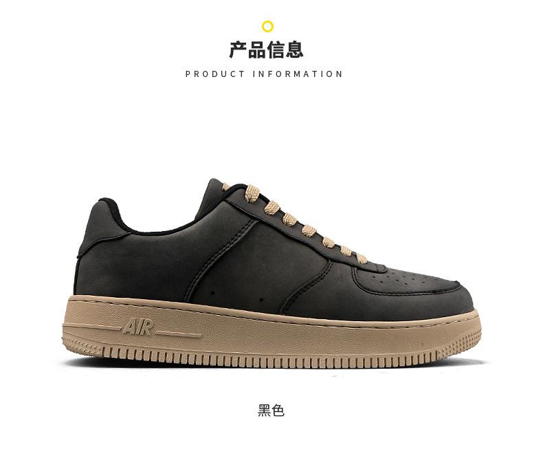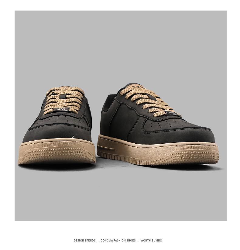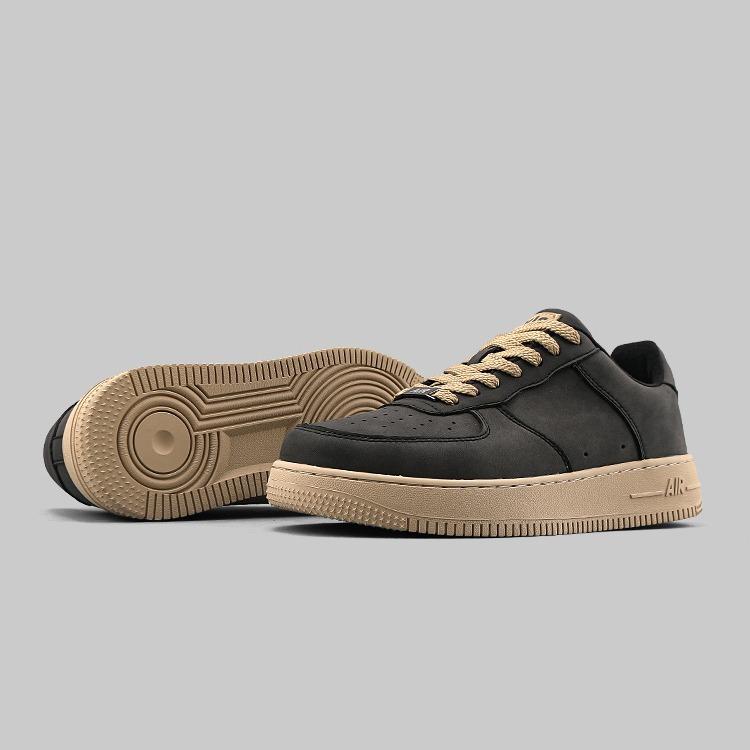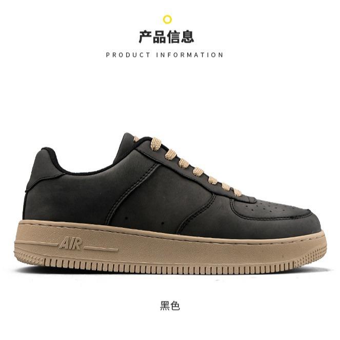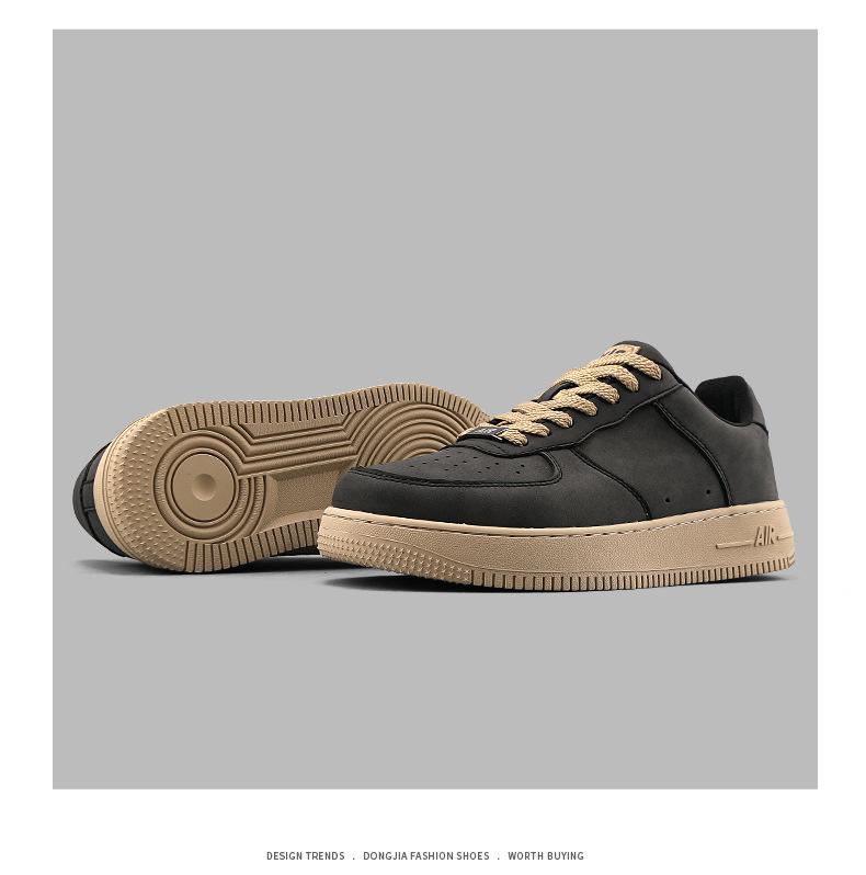 Zapatillas Air Force One de caña baja, estilo tabla, para hombre, estilo casual, color trigo, para estudiantes, blancas, con plataforma negra, a la moda.