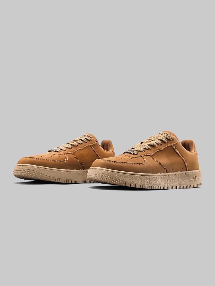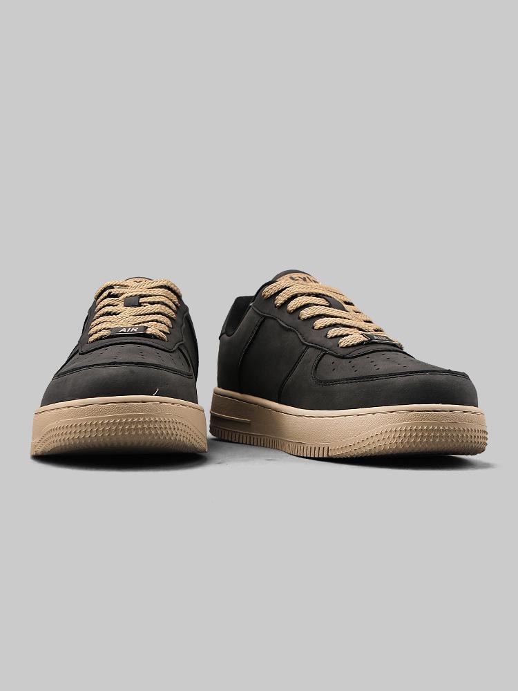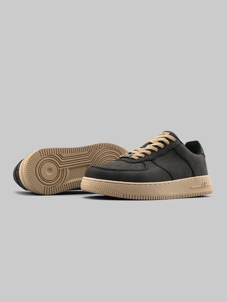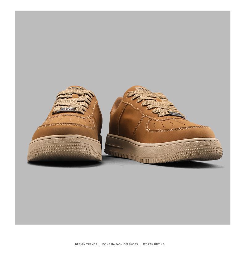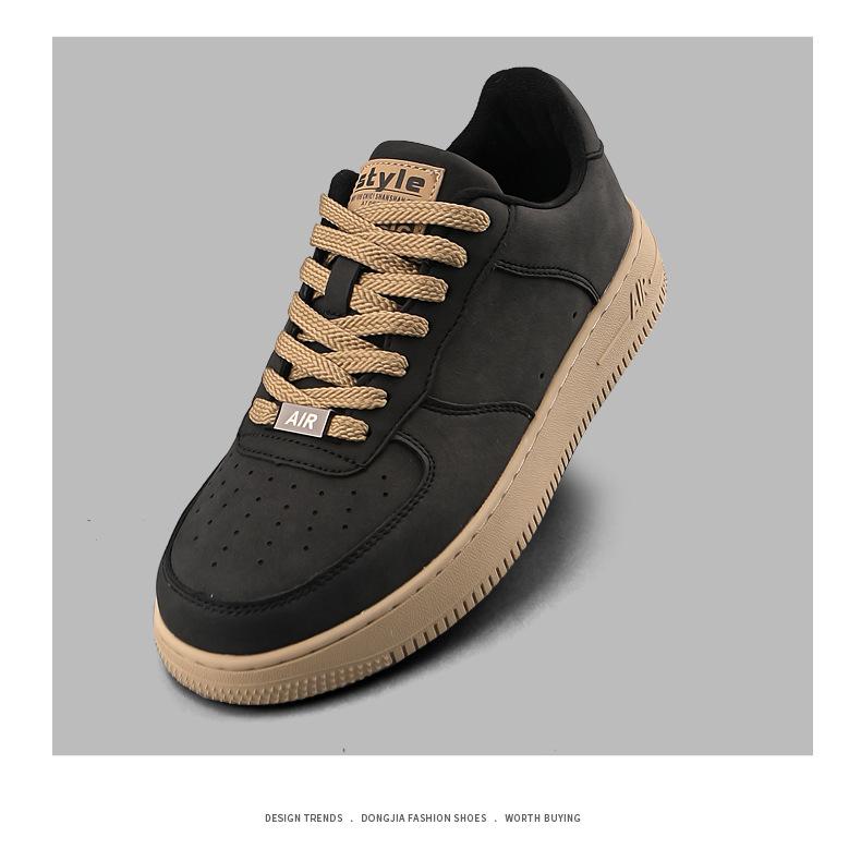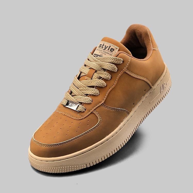 Zapatillas Air Force One de caña baja, estilo tabla, para hombre, estilo casual, color trigo, para estudiantes, blancas, con plataforma negra, a la moda.