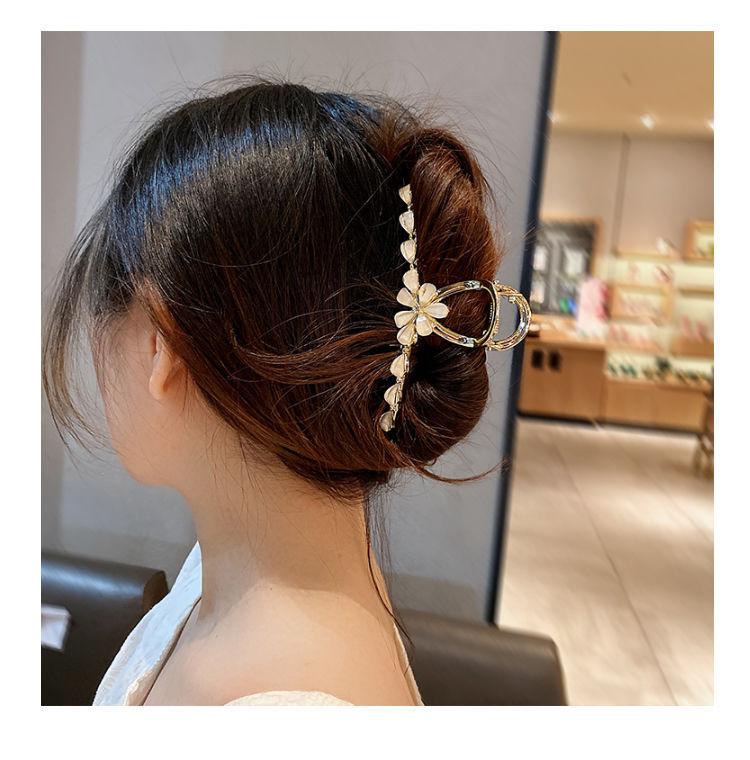 Pinza Grande para el Cabello de Flor con Goteo de Aceite para Mujer, Elegante Pinza de Tiburón para Peinados Recogidos, Accesorio para el Cabello Estilo Lujo Ligero