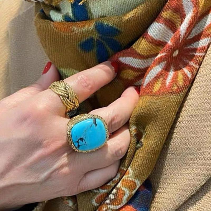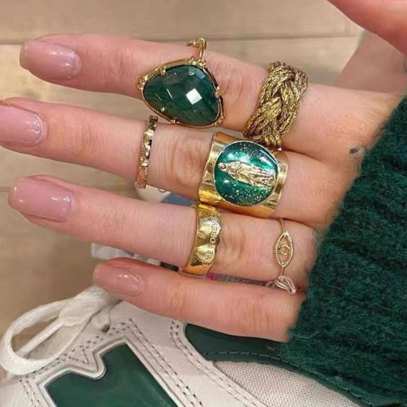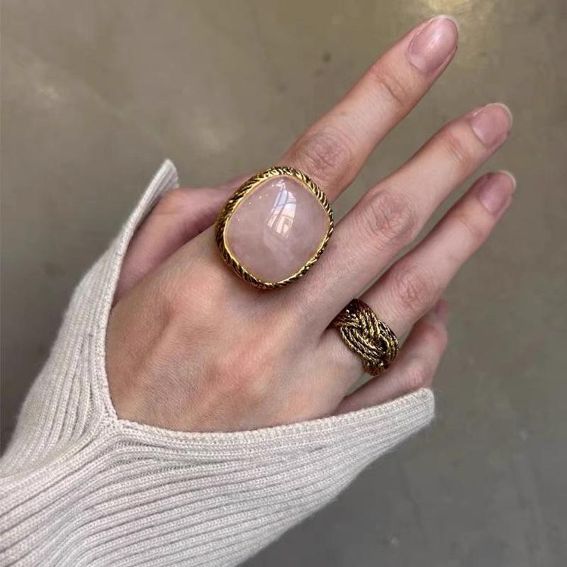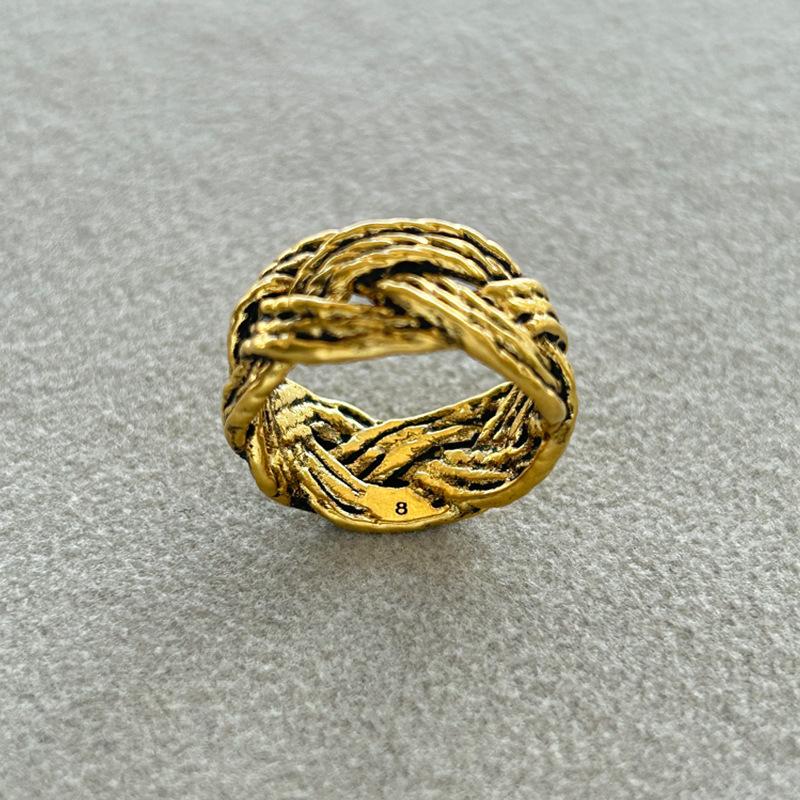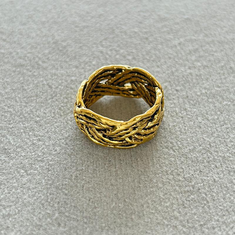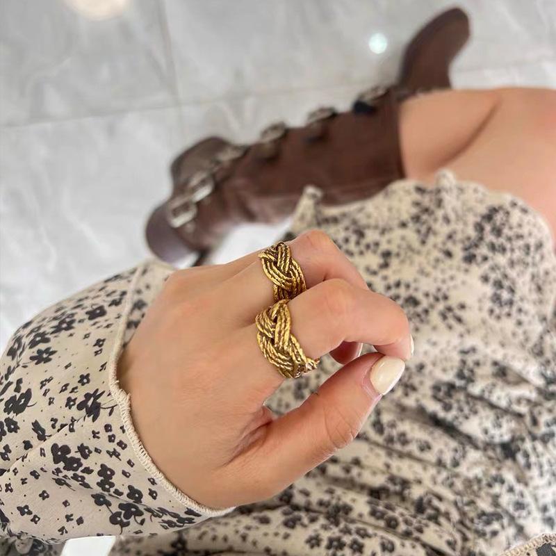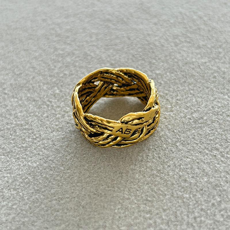 Diseño Nicho Francés AB Mismo Estilo Moda Combinable Personalidad Retro Anillo Tejido Oreja de Trigo Lujo Ligero Anillo Envejecido