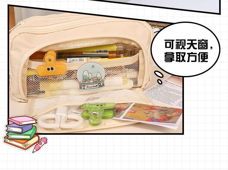 Three-layer open window pencil case-beige