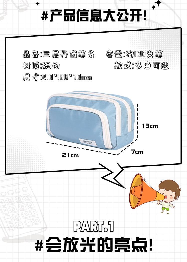 Three-layer open window pencil case-beige, Three-layer open window pencil case-green, Three-layer window penci...