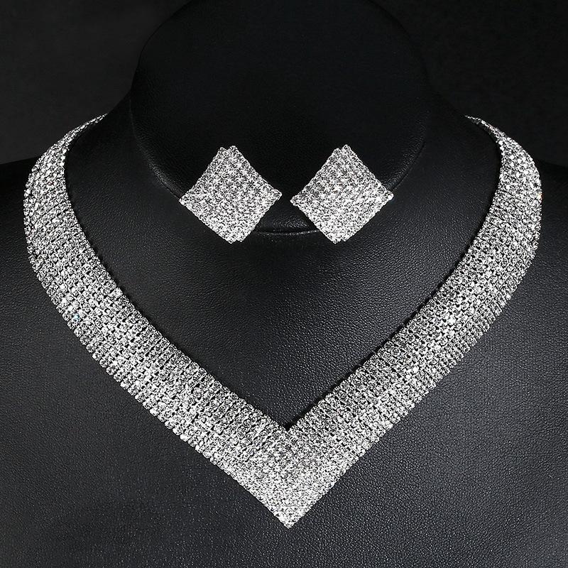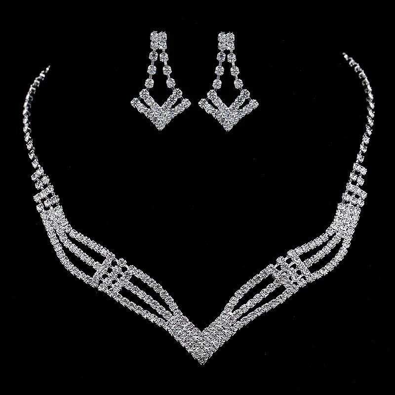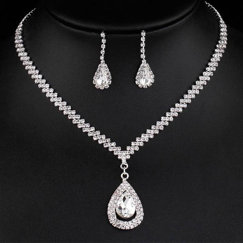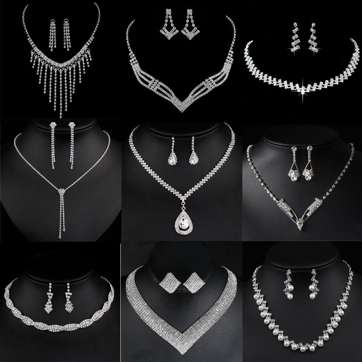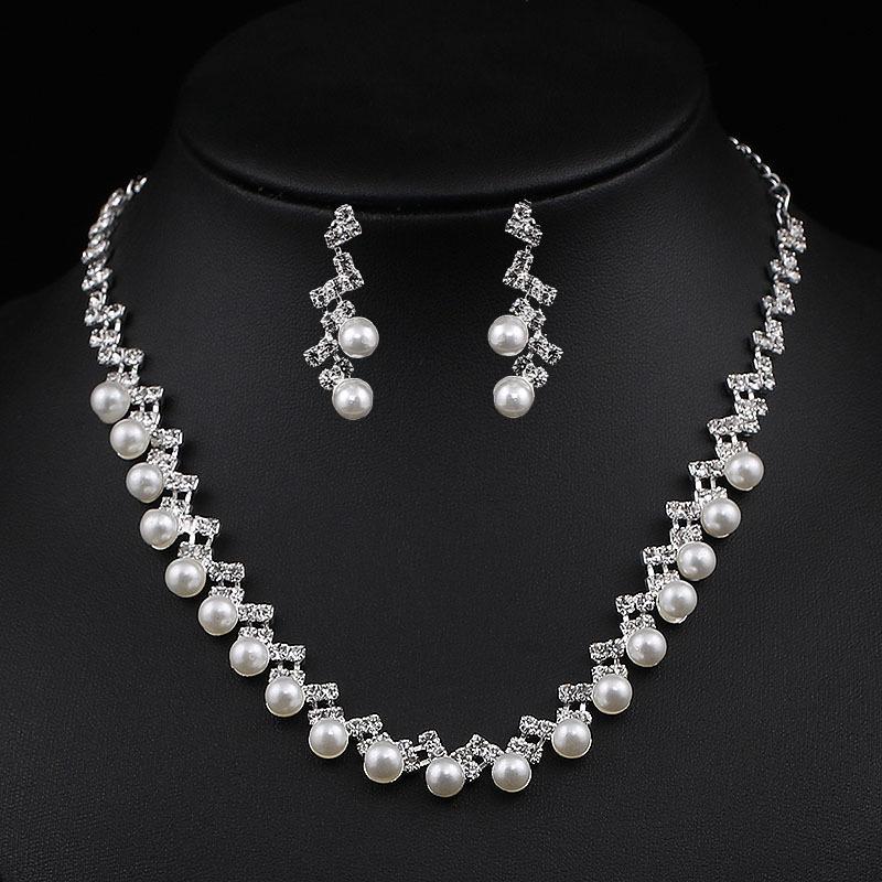 Joyería de boda, moda europea y americana, collar de novia con diamantes de imitación, pendientes, cadena de garra de perla con diamantes transfronterizos, joyería de dos piezas