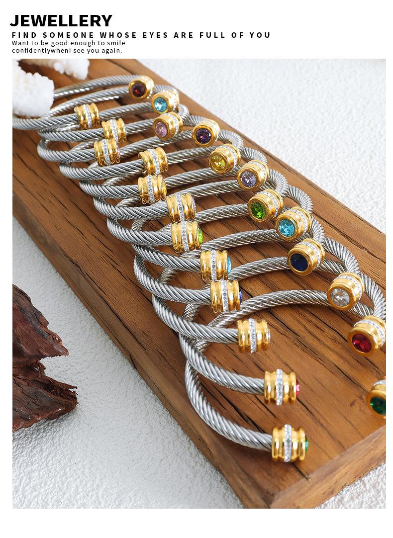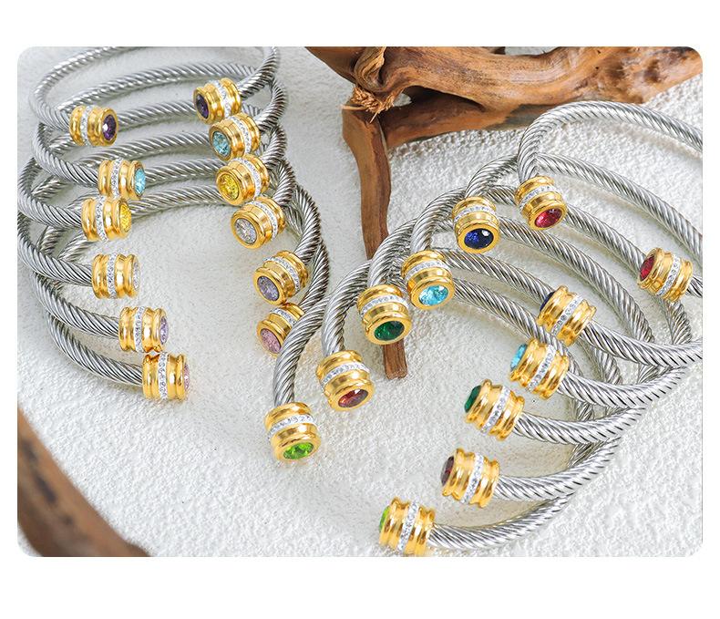 Pulsera abierta de acero de titanio de lujo nuevo europeo y americano con incrustaciones de circonita diseño simple de nicho moda joyería al por mayor para mujeres