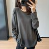 Camiseta de Manga Larga Holgada de Algodón Puro Pesado de Xinjiang para Mujer, Algodón 100% Unisex Color Sólido Blanco y Negro Top de Capa Interior Camiseta Base
