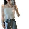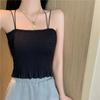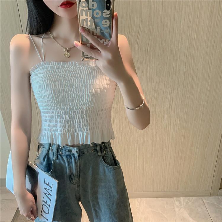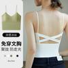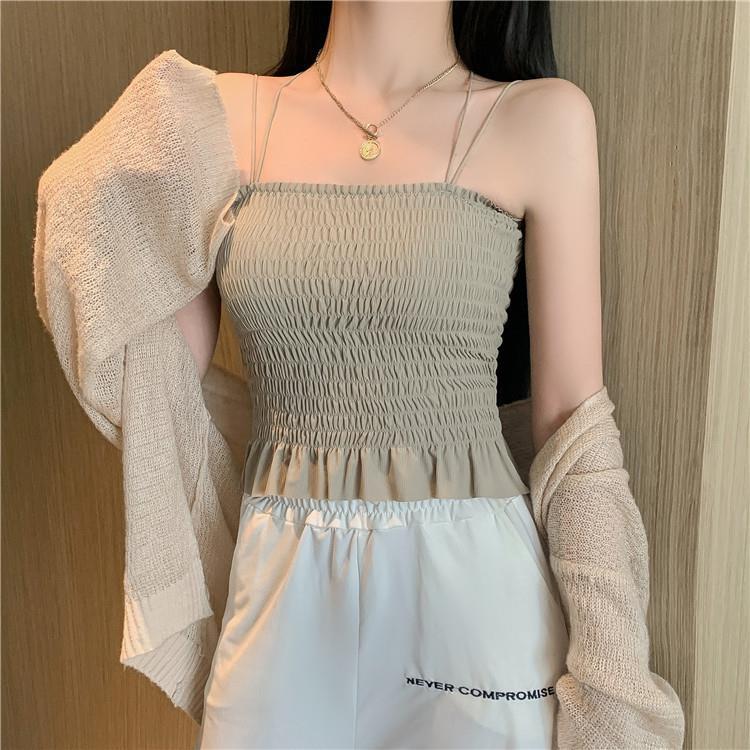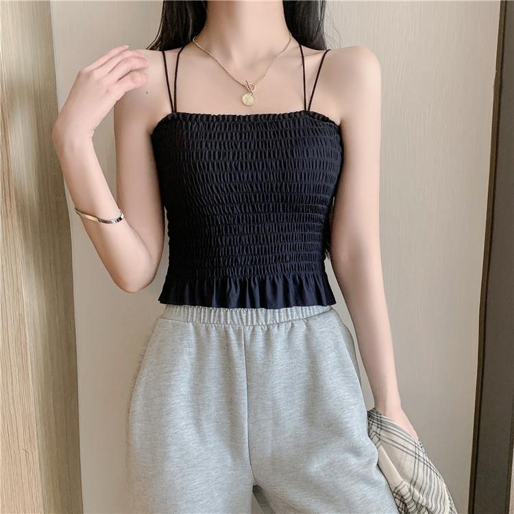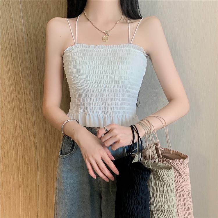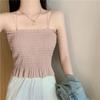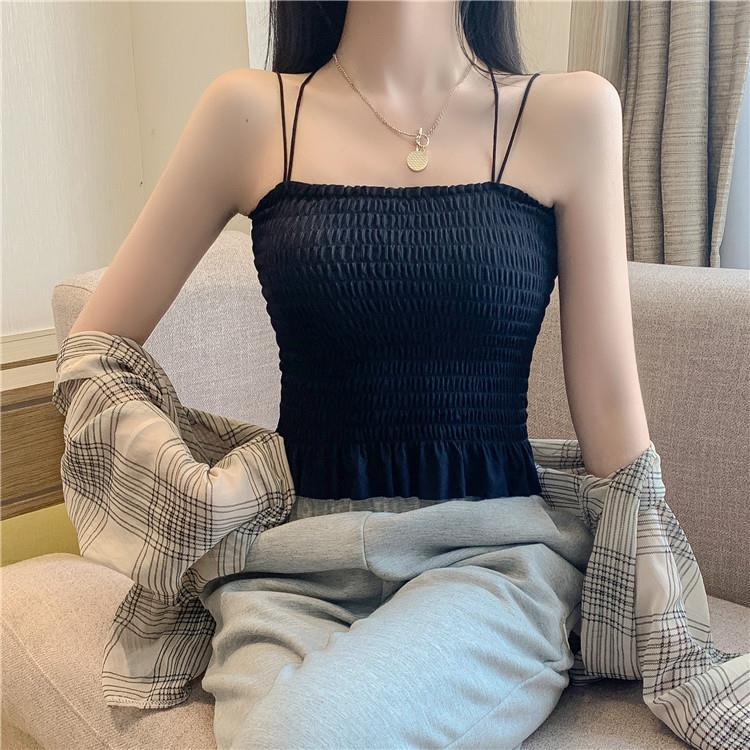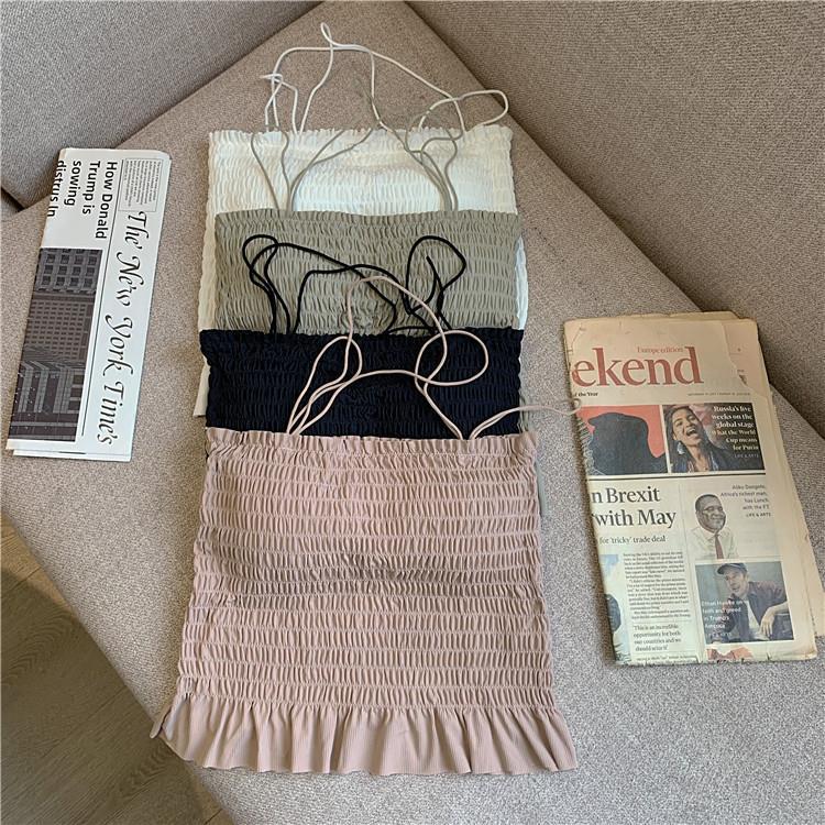 Camisola de seda de hielo con espalda hermosa para mujer, cinturón con almohadilla para el pecho, prenda exterior con doble tirante, plisada, de longitud media, color sólido, base de tubo, ropa interior