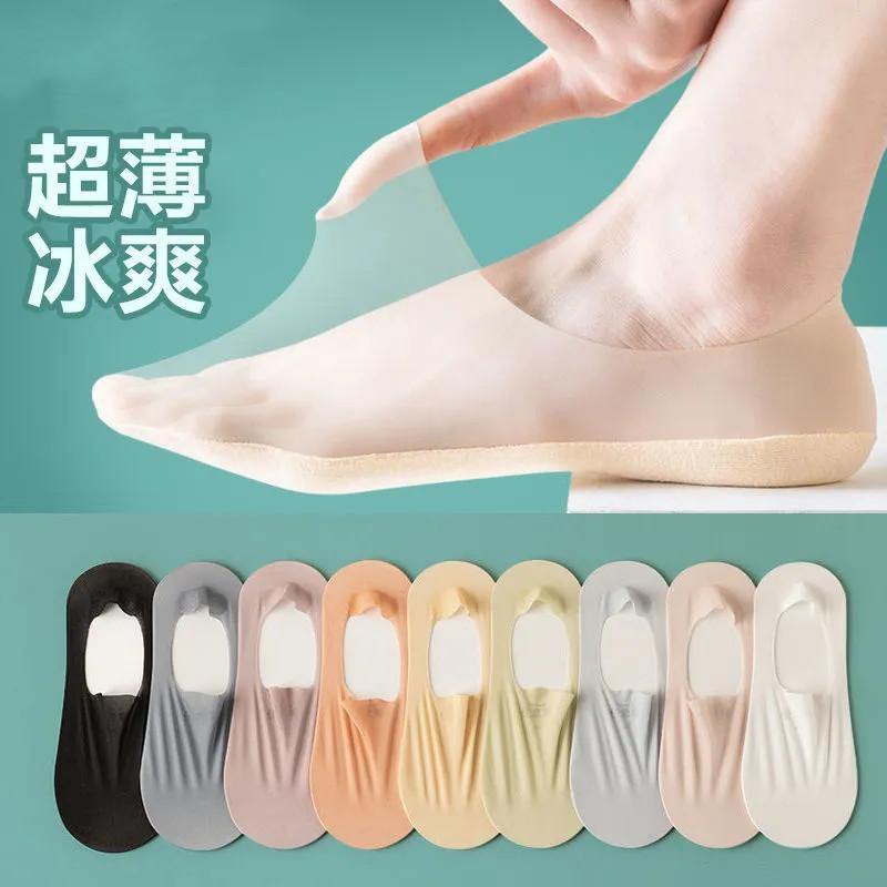 Calcetines de Seda de Hielo para Mujer Calcetines Invisibles Sin Costuras Boca Baja Verano Absorbentes de Sudor Transpirables Finos Silicona Antideslizante Talón Calcetines de Barco