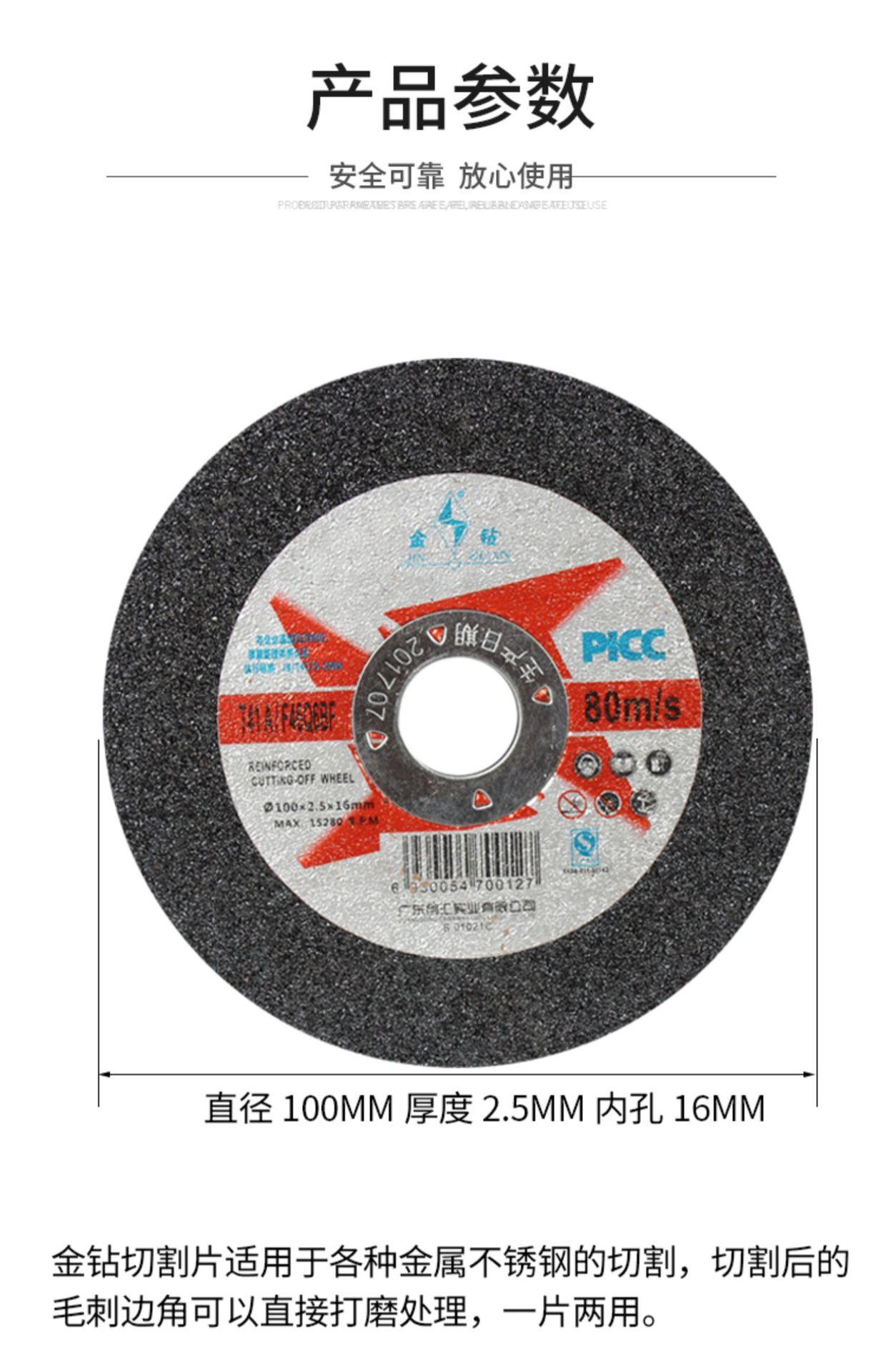 Pieza de corte de taladro de oro 100x 2,5x 16, pieza de rueda de pulido manual de corte, pieza de rueda de arena de acero inoxidable de 100 amoladora angular