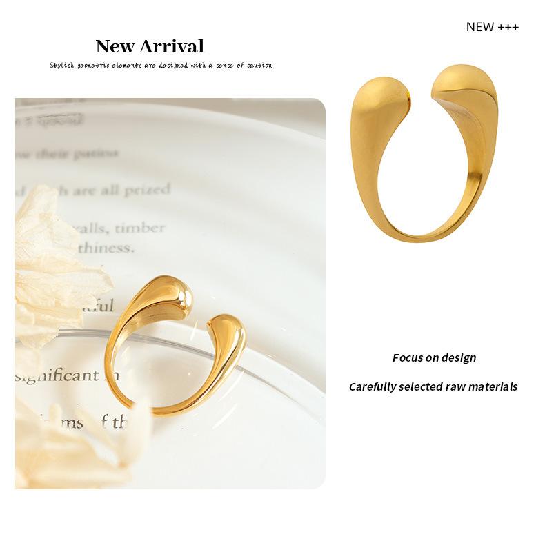 Anillo estilo europeo y americano estilo ins anillo simple geométrico para dedo índice acero titanio chapado en oro de 18k anillo abierto joyería