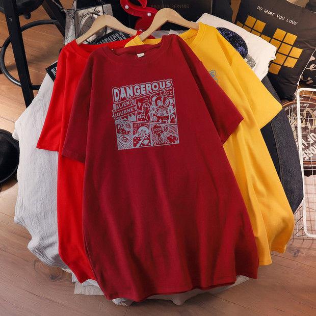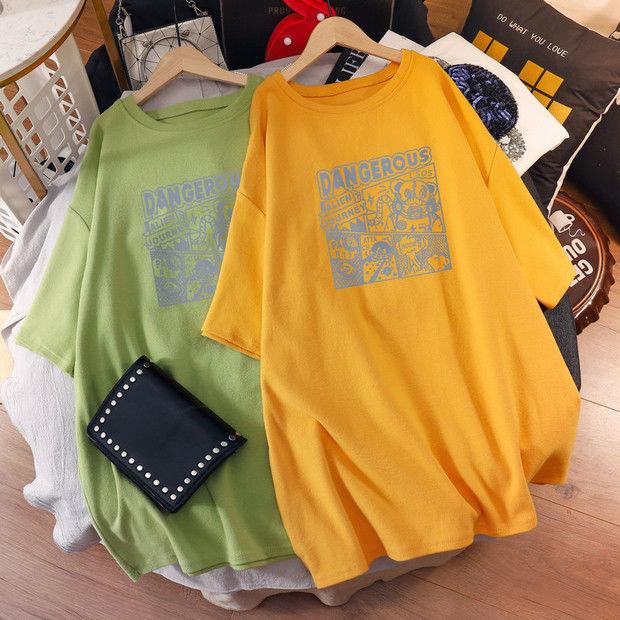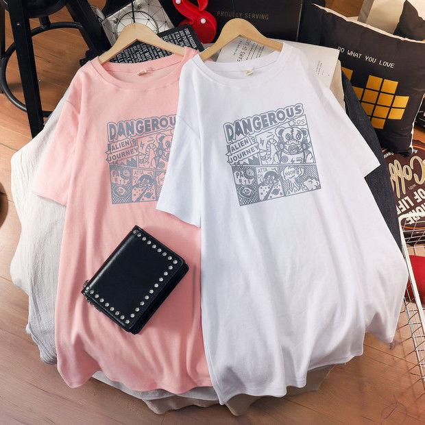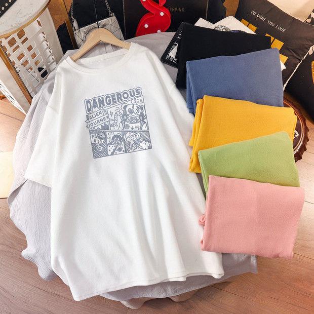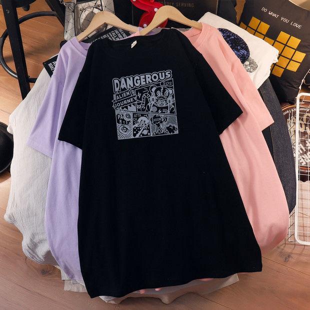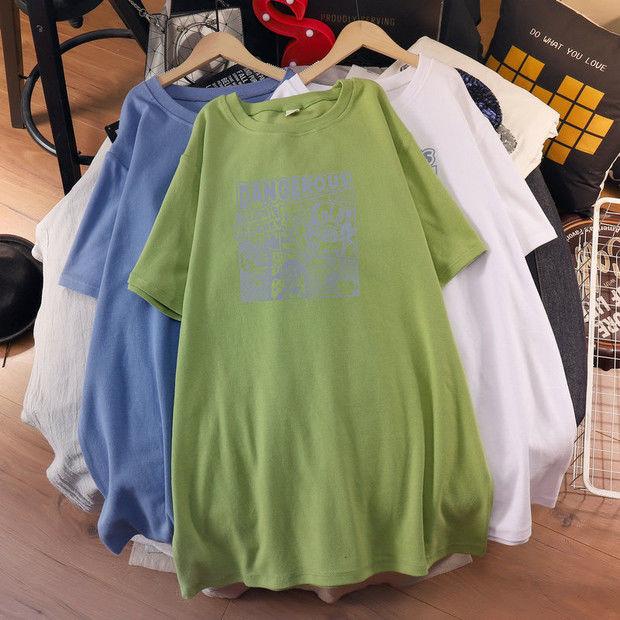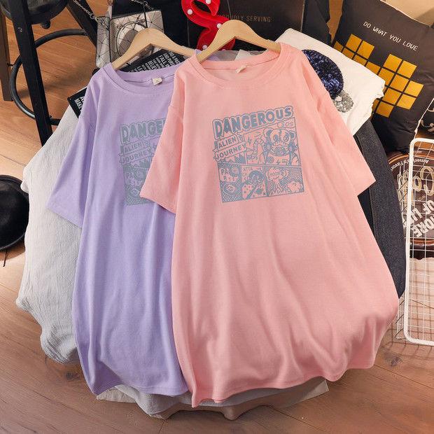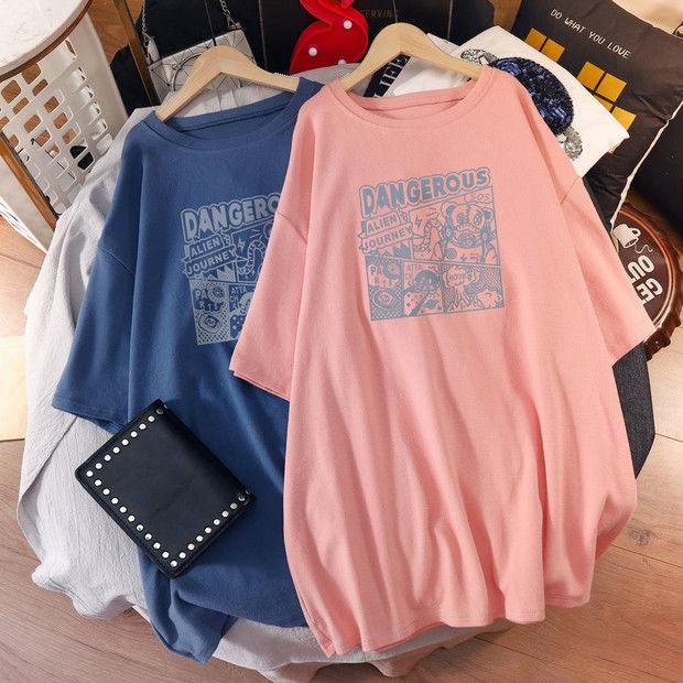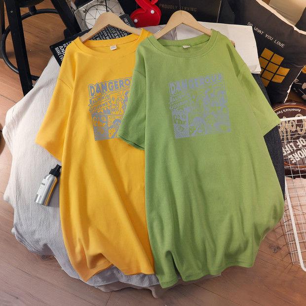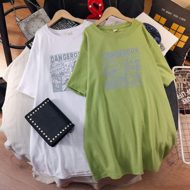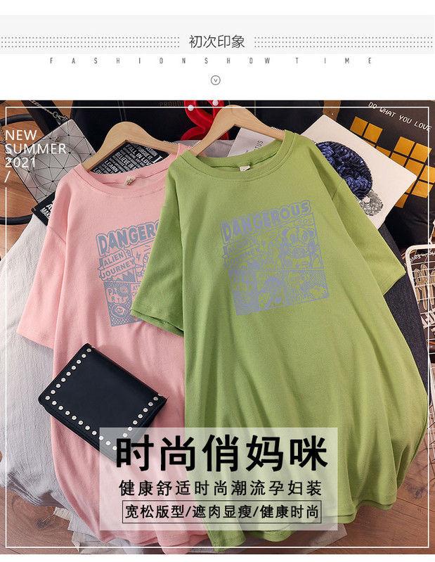 Camiseta de maternidad de algodón puro, camisa holgada de verano, de moda, de talla grande, de manga corta, de largo medio, para verano, 200 libras