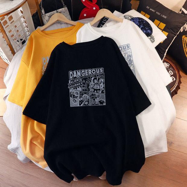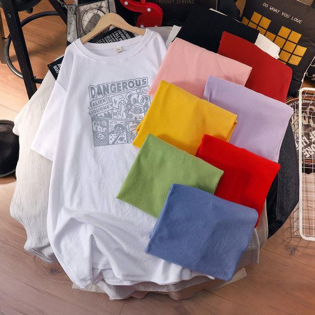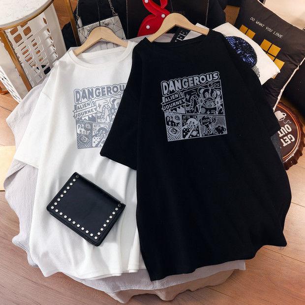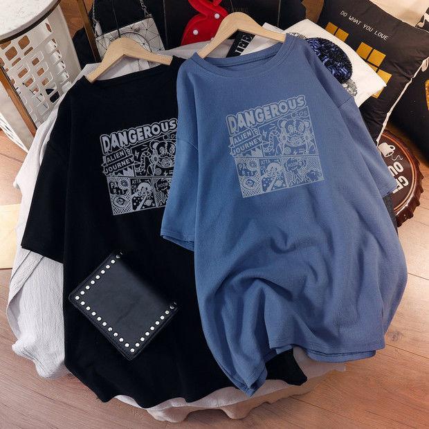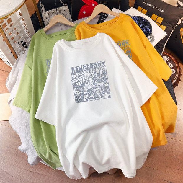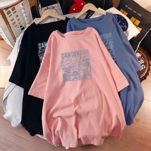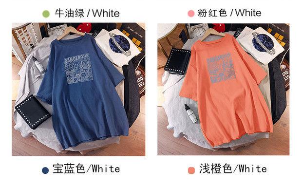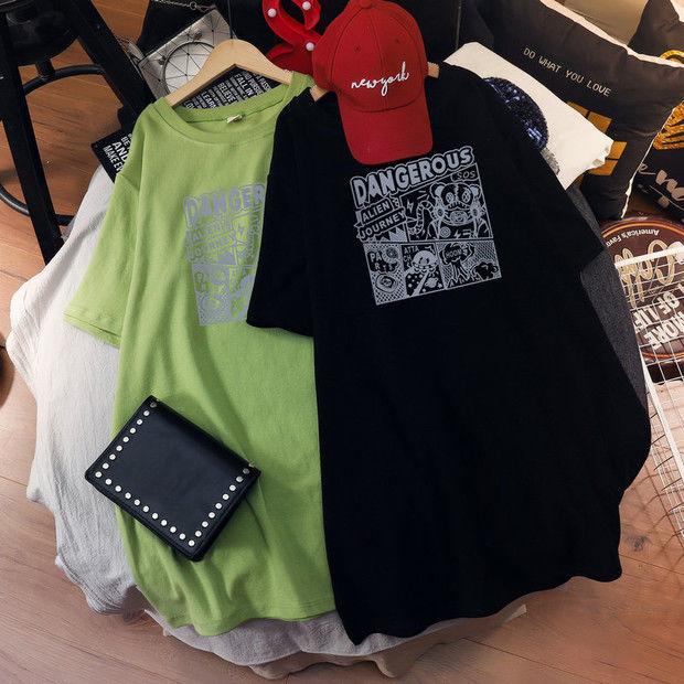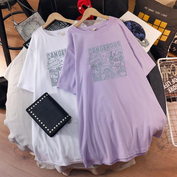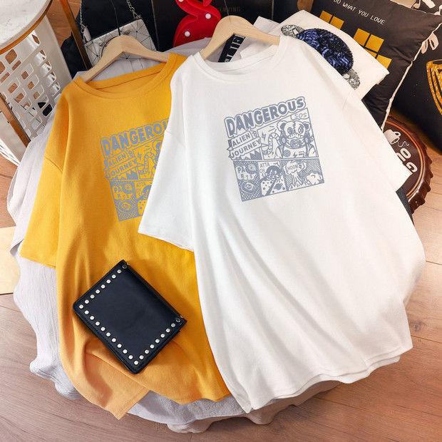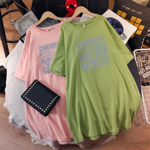 Camiseta de maternidad de algodón puro, camisa holgada de verano, de moda, de talla grande, de manga corta, de largo medio, para verano, 200 libras