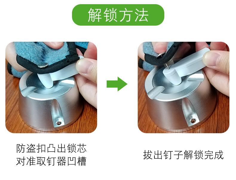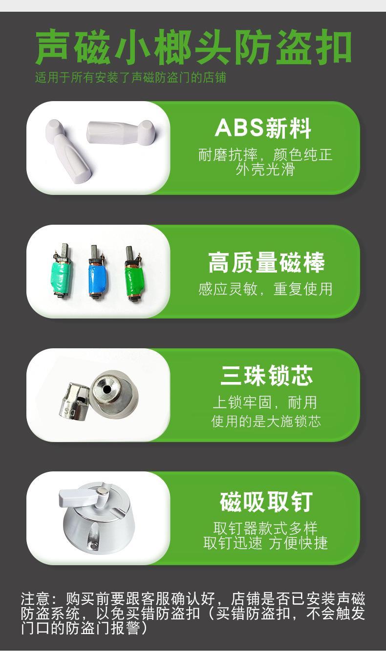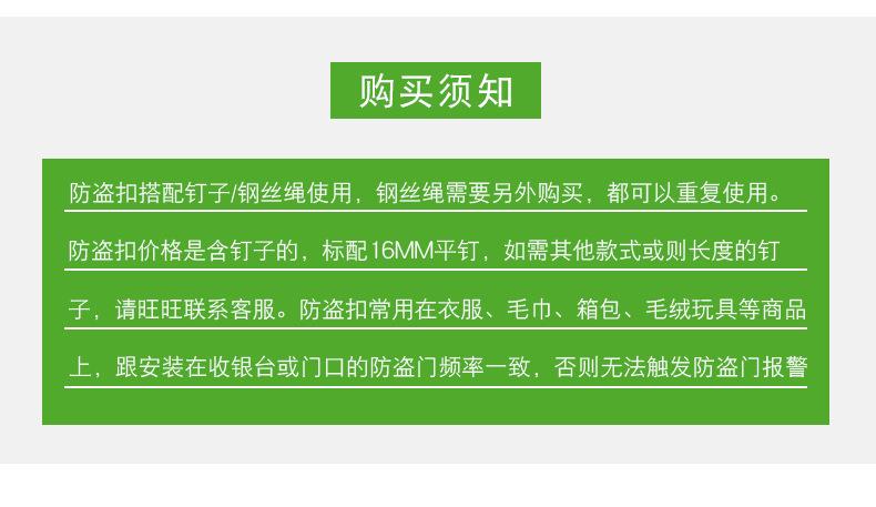 Se pueden usar clavos antirrobo o cuerdas antirrobo en la mercancía. Si la mercancía protegida por la etiqueta dura tiene mercancía impaga, sonará una alarma cuando pase por la puerta antirrobo. La etiqueta dura tiene una excelente tasa de detección, es duradera y se puede usar