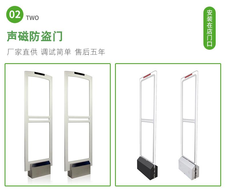 Es fácil de usar, de apariencia hermosa y fuerte en anti-destrucción. El sistema EAS antirrobo de mercancías consta de tres partes: detector antirrobo, etiqueta electrónica, decodificador o desbloqueador. Las etiquetas electrónicas se dividen en etiquetas suaves y etiquetas duras.