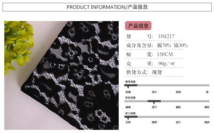 5. Hilados prensados por computadora y tejidos planos 6. Tejidos de encaje elásticos y no elásticos 7. Diversas especificaciones de encaje