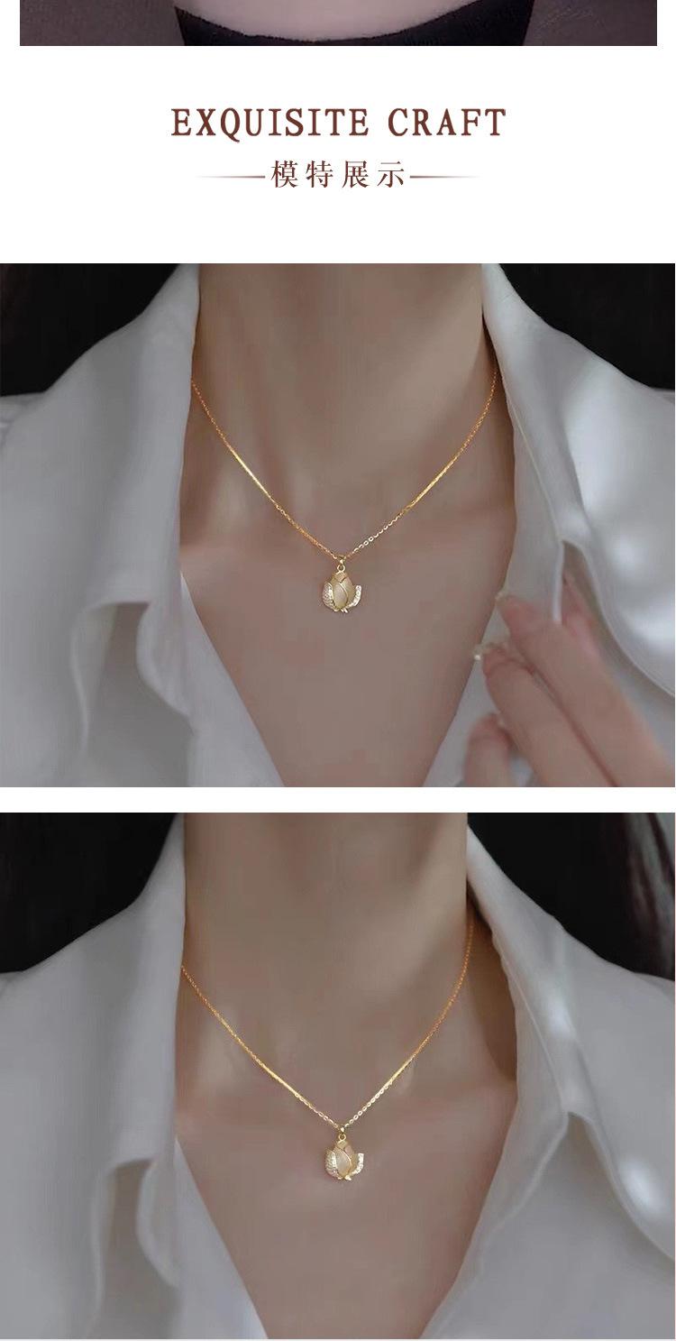Collar con colgante de tulipán de circón rojo neto para mujer, diseño Joker, acero de titanio con baño de oro real, cadena para clavícula al por mayor