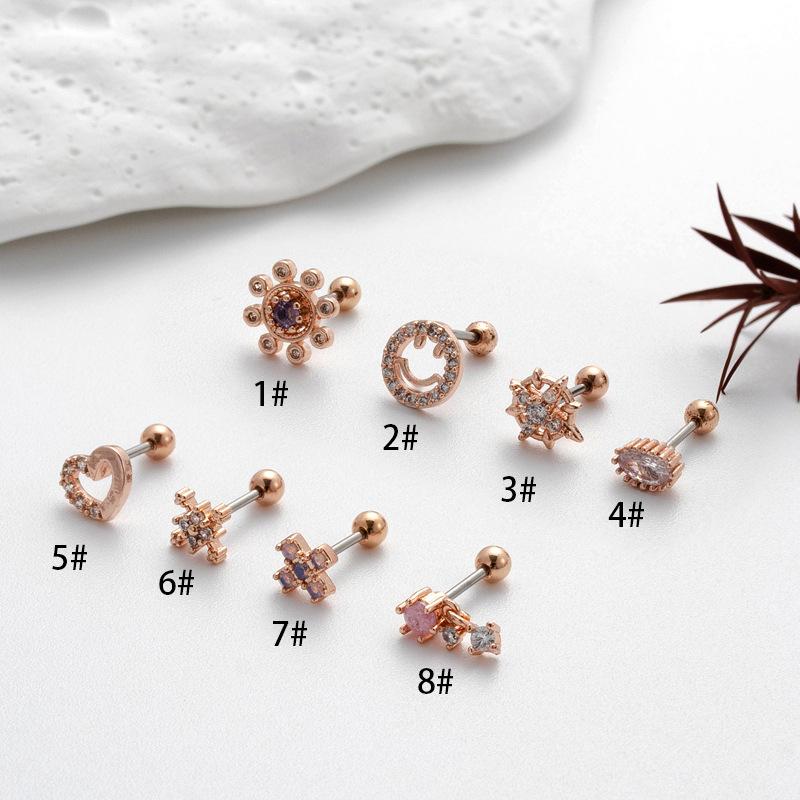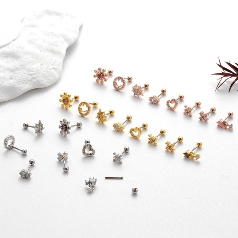 | nombre del producto | Versión japonesa y coreana de pequeños y frescos clavos de circonita con forma de corazón para el cartílago de la oreja, acero inoxidable 20G, barra delgada, clavos para piercing, accesorios populares de moda |